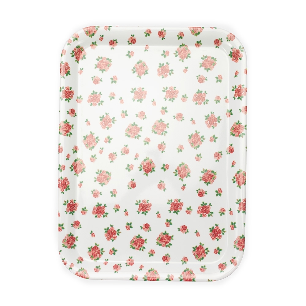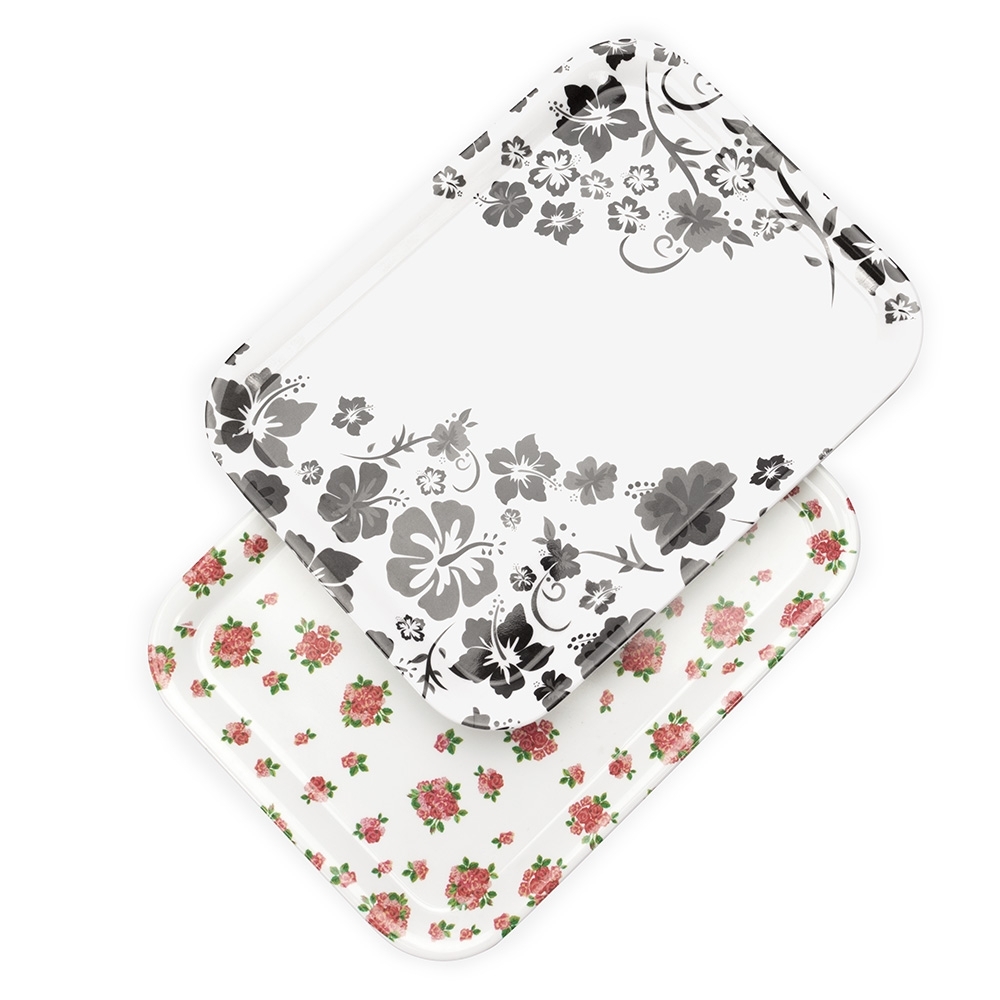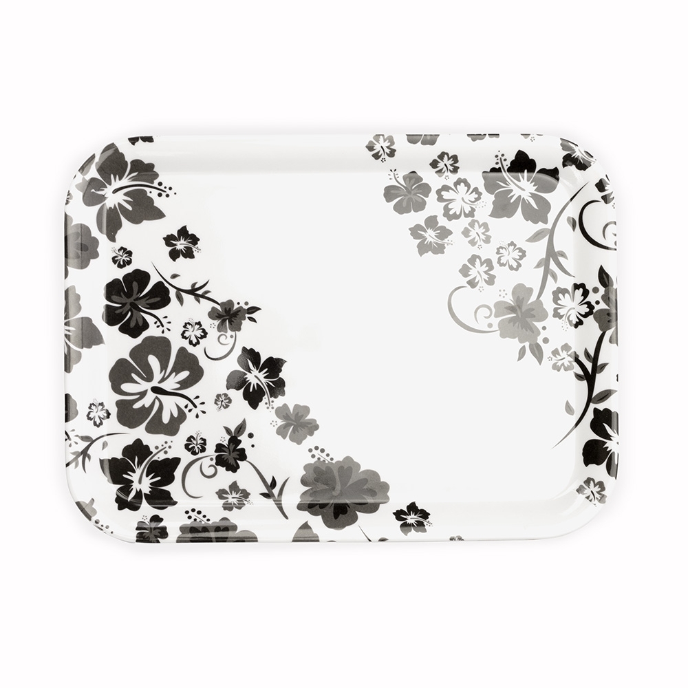 Bandeja retangular feito em melamina, material conhecido por sua resistência a impactos e facilidade de limpeza.