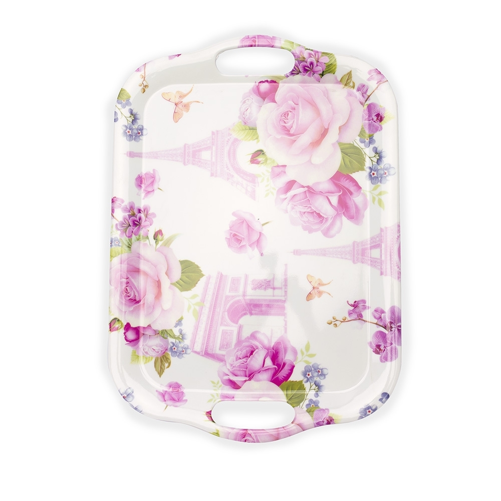 Bandeja de Melamina 41,5 x 29,5 com Alça.: Bandeja retangular em melamina, material leve, resistente a impactos e fácil de limpar. Contém duas alças laterais para transporte. ... O mimo personalizado ideal para personalizar sua marca.