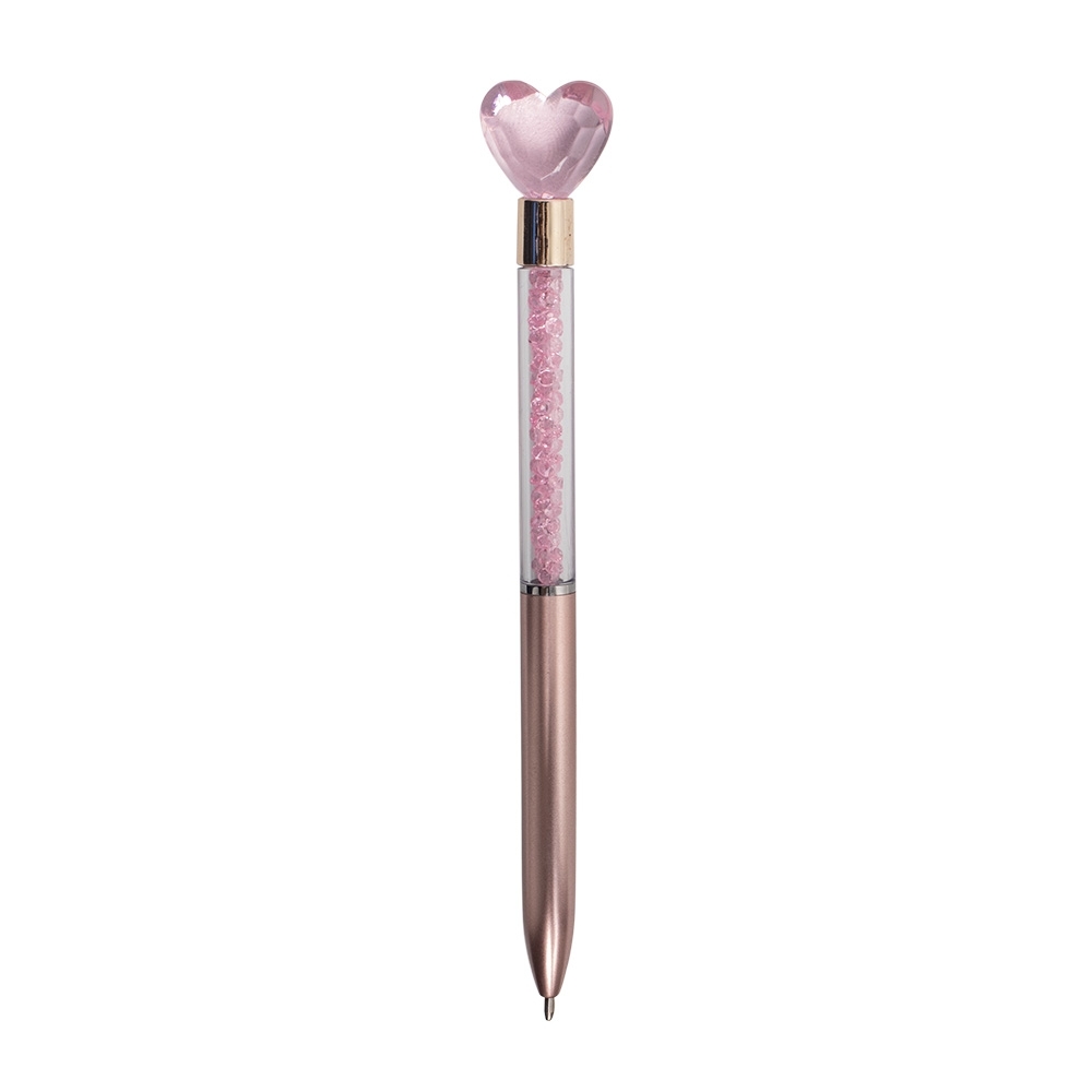 Adicione um toque de amor ao seu dia a dia com esta caneta decorada por um delicado coração e strass que brilham com sofisticação. Feita em plástico, com acionamento por rotação, carga esferográfica azul de 1mm garante escrita suave e precisa. Perfeita para quem busca um item funcional e cheio de paixão!
