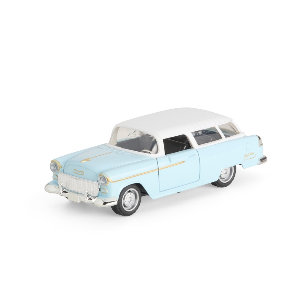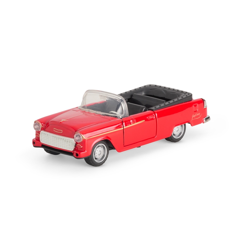 Carro em miniatura inspirado em um modelo clássico. Com estrutura feita em metal e plástico, possui mecanismo de fricção nas rodas traseiras e portas com aberturas funcionais.