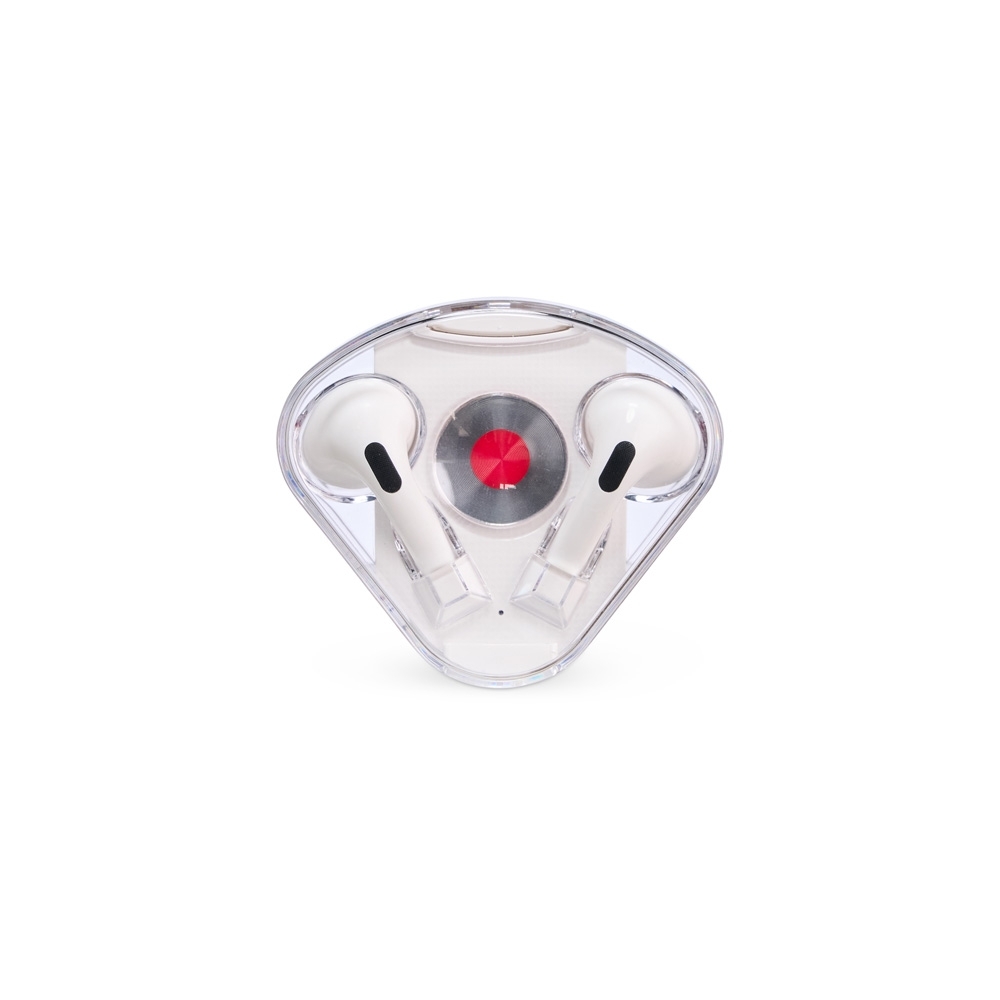 Fone de ouvido bluetooth com comandos touch e case carregador de fechamento magnético. Acompanha USB Tipo-C.