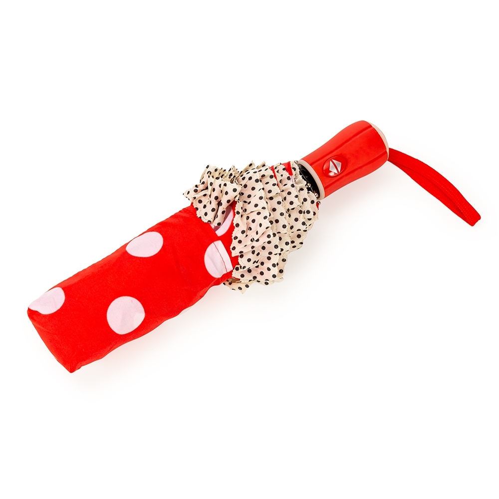 Guarda-chuva de poliéster com acionamento de botão, possui estrutura metálica com 8 varetas e pegador plástico com cordão de nylon. Acompanha capa protetora. OBS.: PEÇAS SORTIDAS.