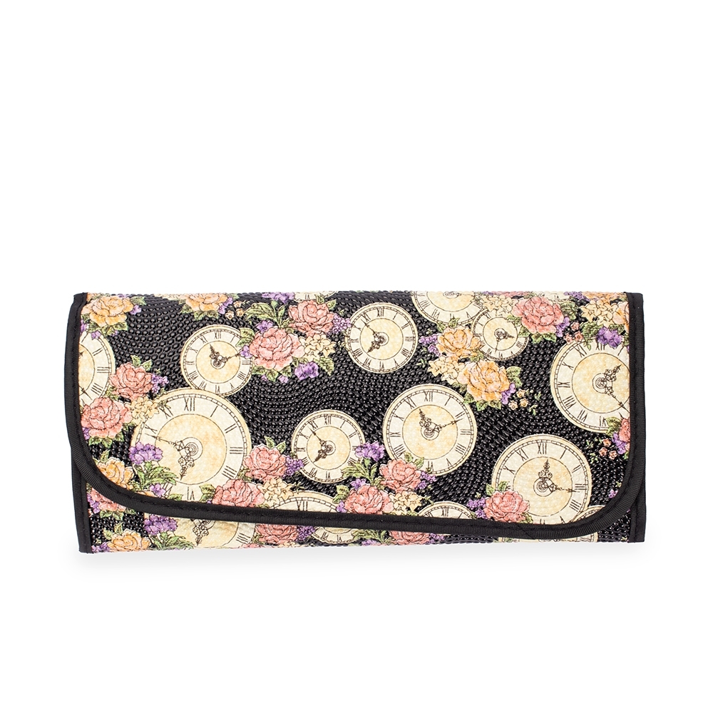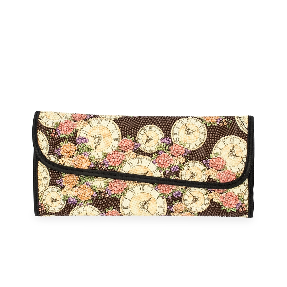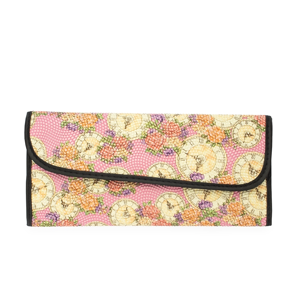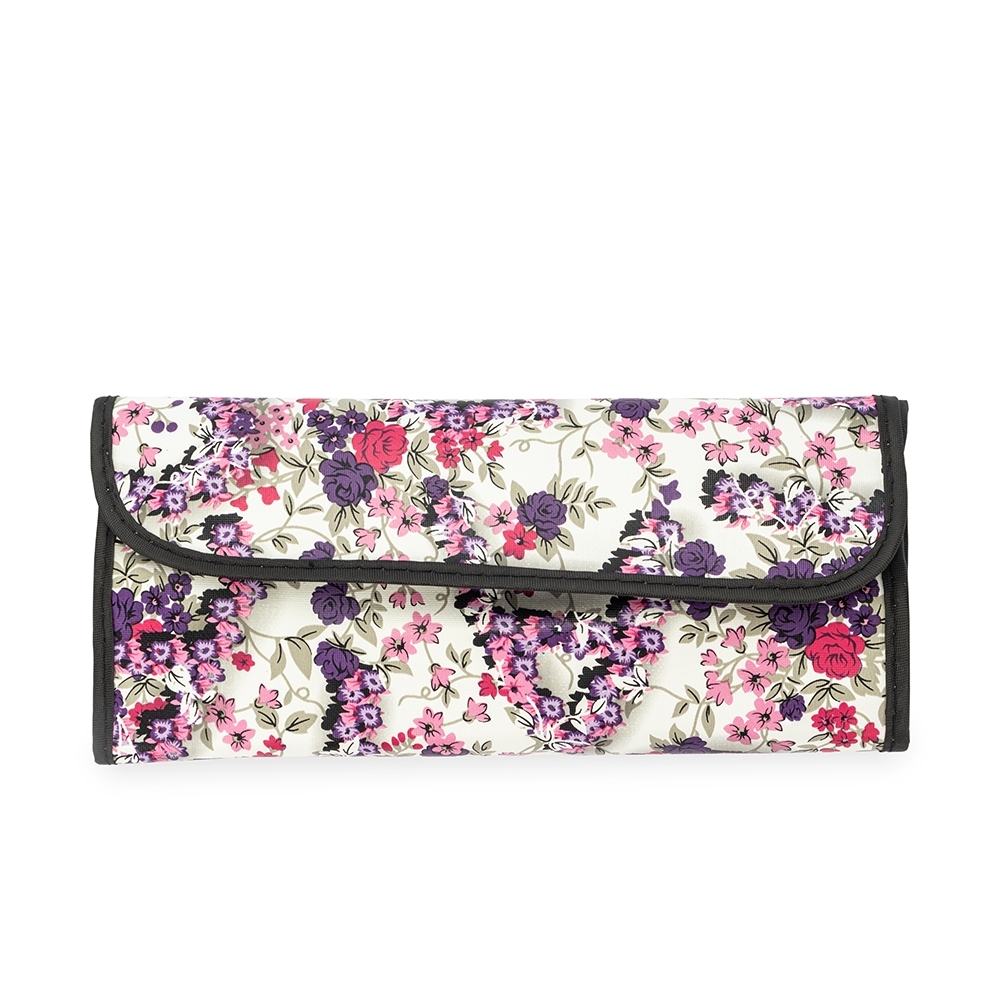 Kit de 12 pincéis de maquiagem com cabos em MDF e cerdas sintéticas macias. O conjunto inclui um pente-escova para cílios e sobrancelhas, uma escova para cílios, além de pincéis para a aplicação de delineador, base, sombra, batom líquido e pó. Acompanha nécessaire dobrável com bolso interno em tela de nylon e fechamento por botões magnéticos.