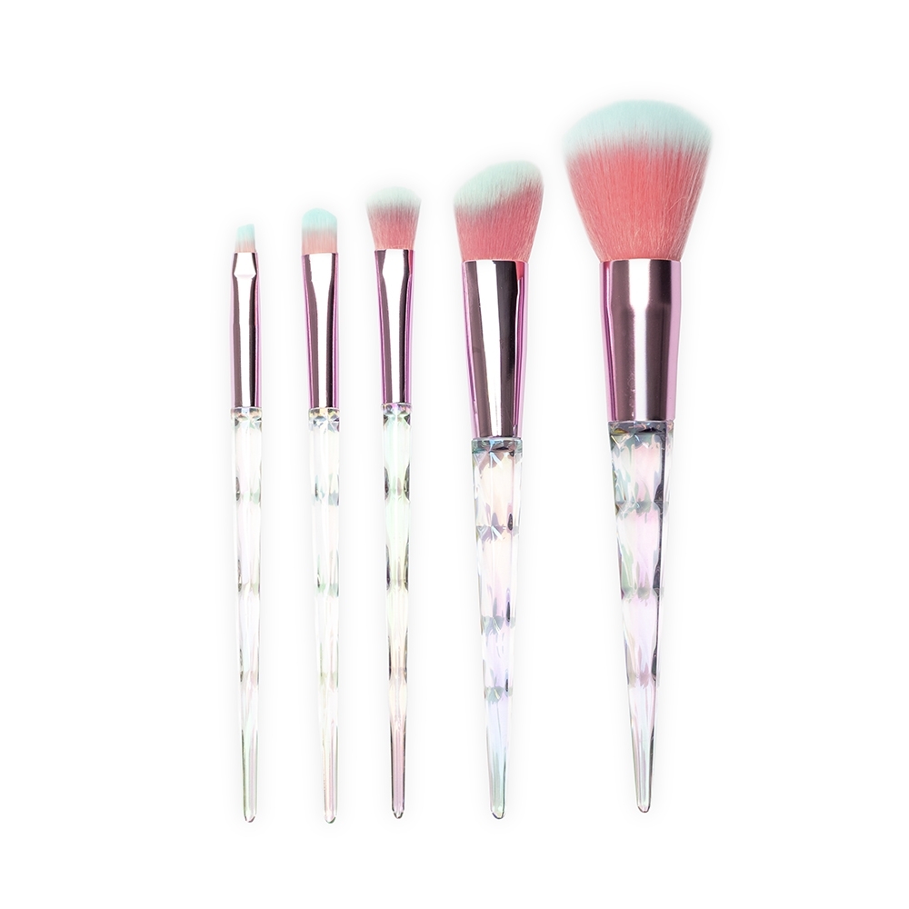 Kit com cinco pincéis de maquiagem com cabos em plástico e cerdas sintéticas macias. O conjunto apresenta pincéis dedicados para a aplicação de pó, iluminador, base e delineador. Além disso, acompanha nécessaire com acabamento brilhante e fechamento em zíper.