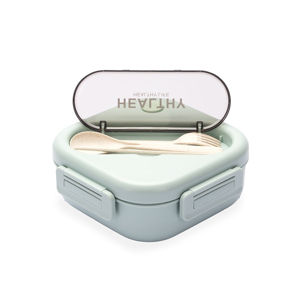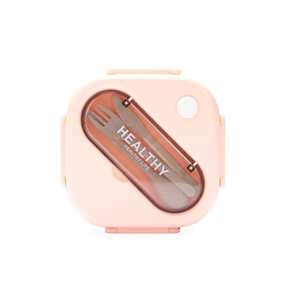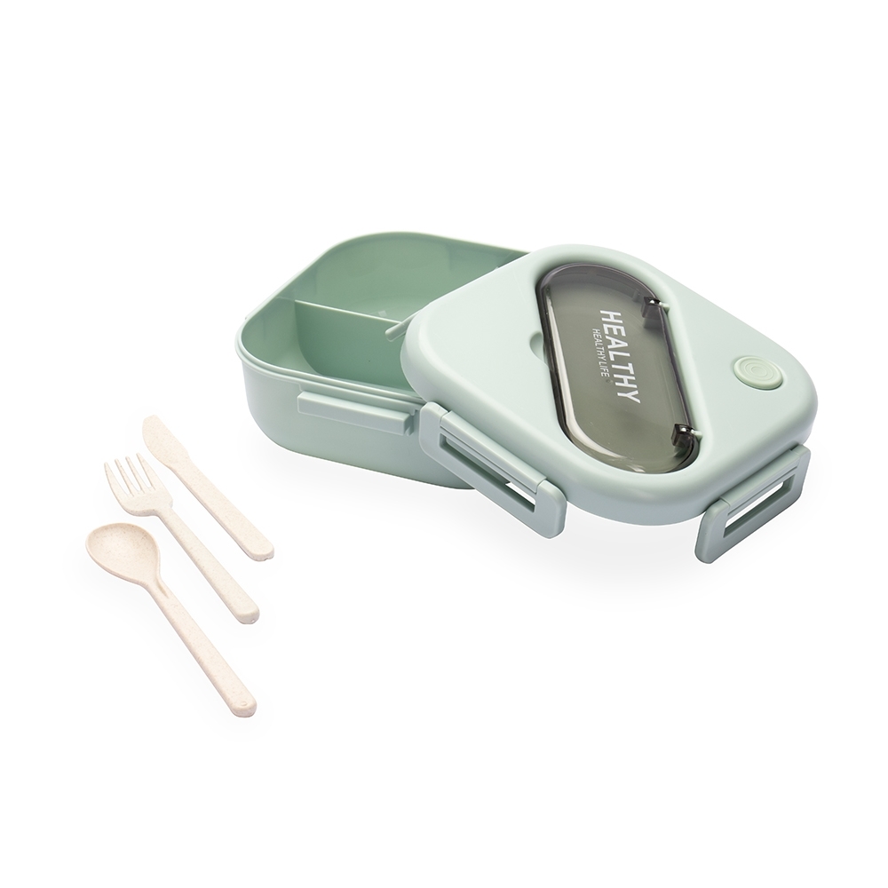 Marmita hermética com três divisórias internas em diferentes tamanhos e capacidade de até 1,2 litro. Fabricada em plástico PP atóxico e livre de BPA, possui tampa com vedação de silicone, travas de segurança laterais e compartimento para talheres. Acompanha garfo, faca e colher.
