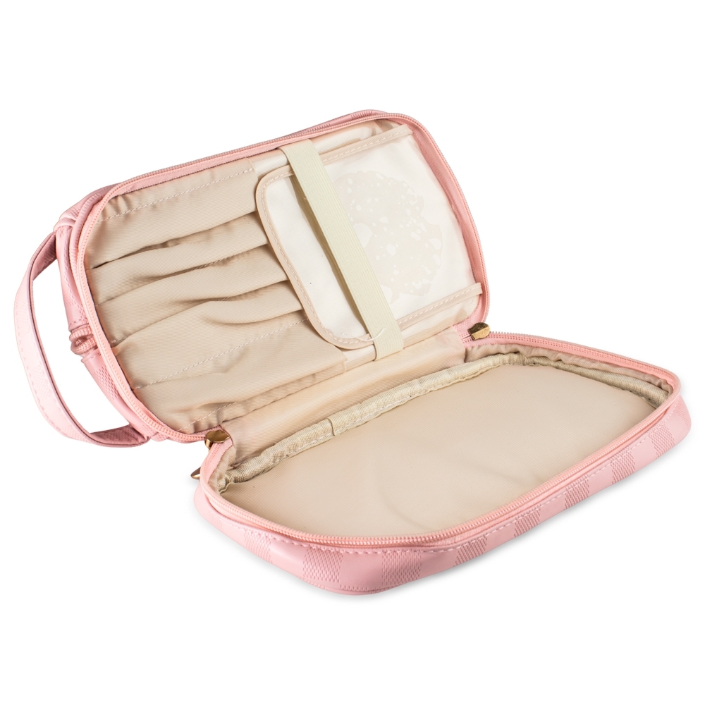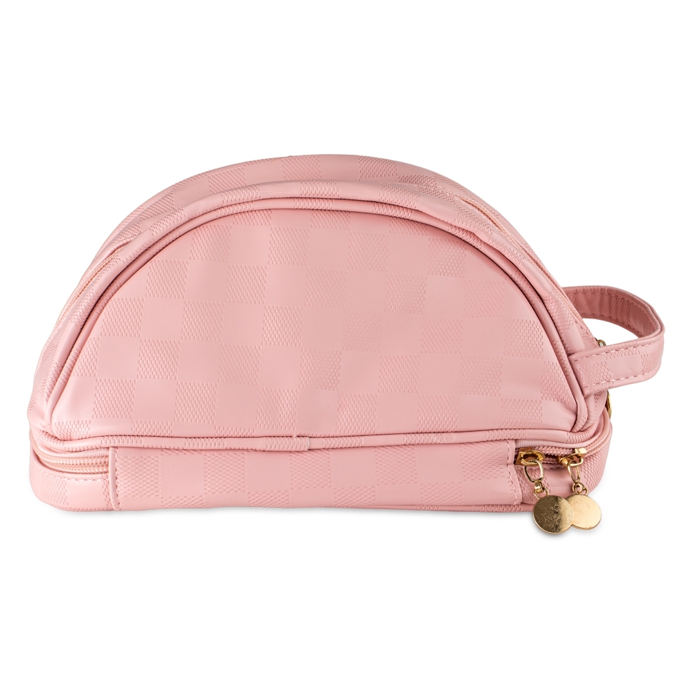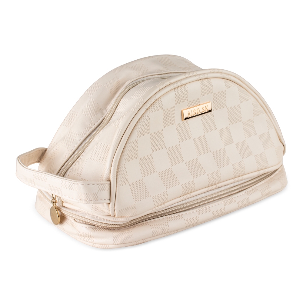 Um acessório sofisticado e versátil para itens essenciais de beleza e cuidadoi! Feita em couro sintético PU de alta qualidade, esta nécessaire combina elegância e funcionalidade com um design moderno e detalhes em padrão xadrez. Perfeita para organizar maquiagens e produtos de higiene, ela é à prova dágua e possui zíperes individuais para fechar os compartimentos superior e inferior com segurança. Além disso, sua alça prática facilita o transporte, tornando-a ideal para o dia a dia ou viagens.
