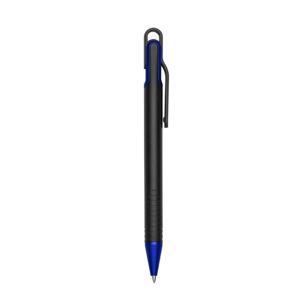 Pacote com 50 peças da caneta plástica com carga esferográfica azul 1.0 mm e acionamento por clique.