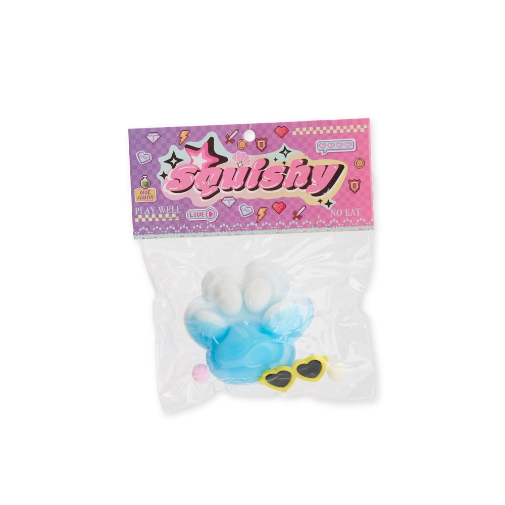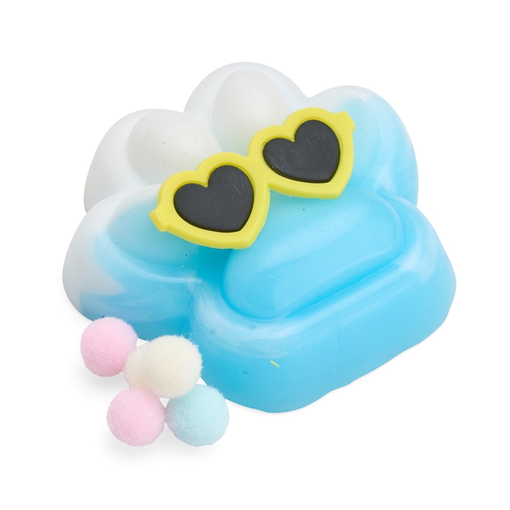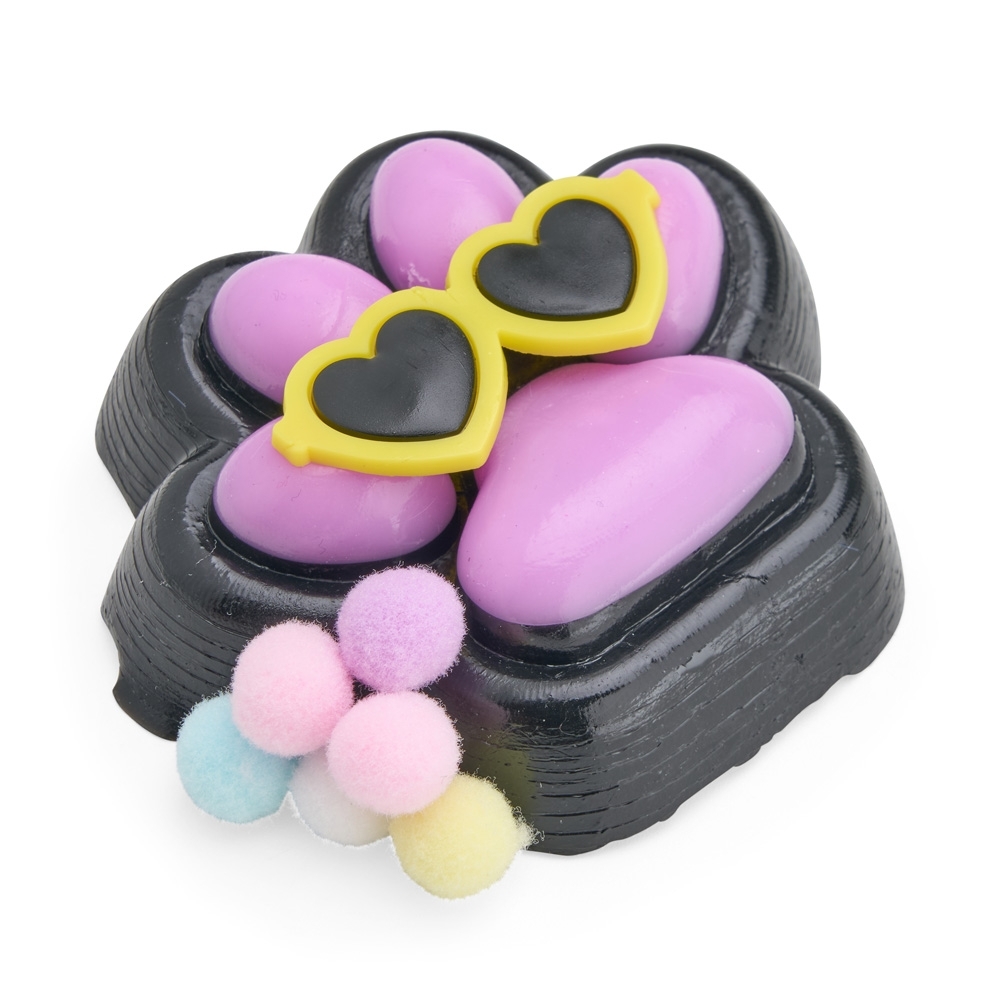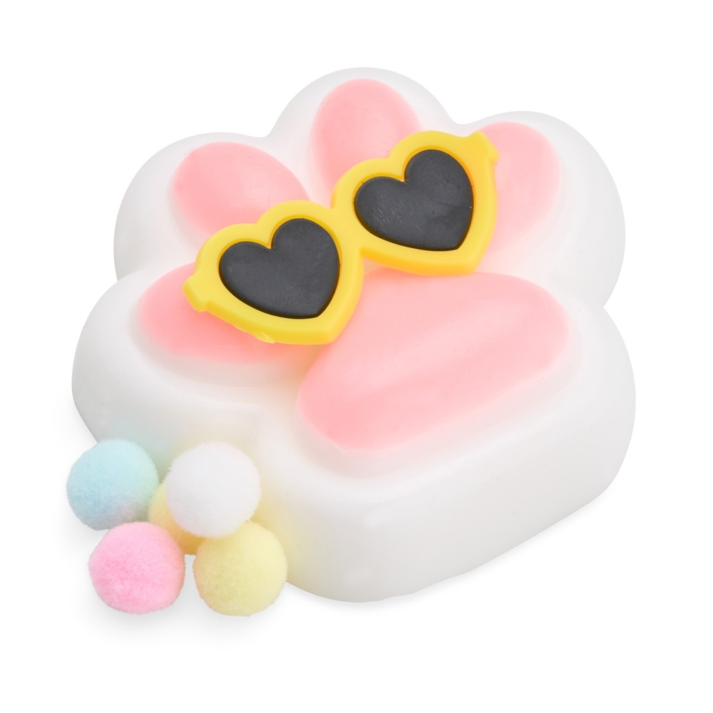 Brinquedo apertável antiestresse em formato de pata estilizada. Produzido em borracha termoplástica de textura lisa e macia, que adere facilmente a superfícies planas. Acompanha um pequeno óculos em plástico e bolinhas de pelúcia para decoração.