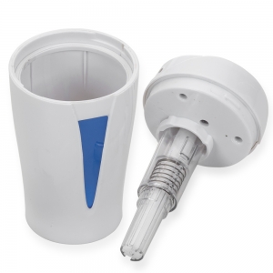 Umidificador de ar para carro: Material em plástico resistente branco com detalhe azul frontal, possui botão superior liga/desliga e quando ligado uma luz interna irá acender, acompanha cabo USB e adaptador para carro. Tempo de duração para esgotar o líquido: 3:30hs/200ml. Para utilização é necessário rosquear a tampa superior e despejar líquido até a superfície, após isto feche. Plugue o cabo na tampa do umidificador e conecte à uma porta USB; para uso no carro é necessário fazer o passo anterior além da conexão do adaptador no carro. O umidificador também funciona conectado à energia, mas é necessário uma tomada adaptadora(não inclui).