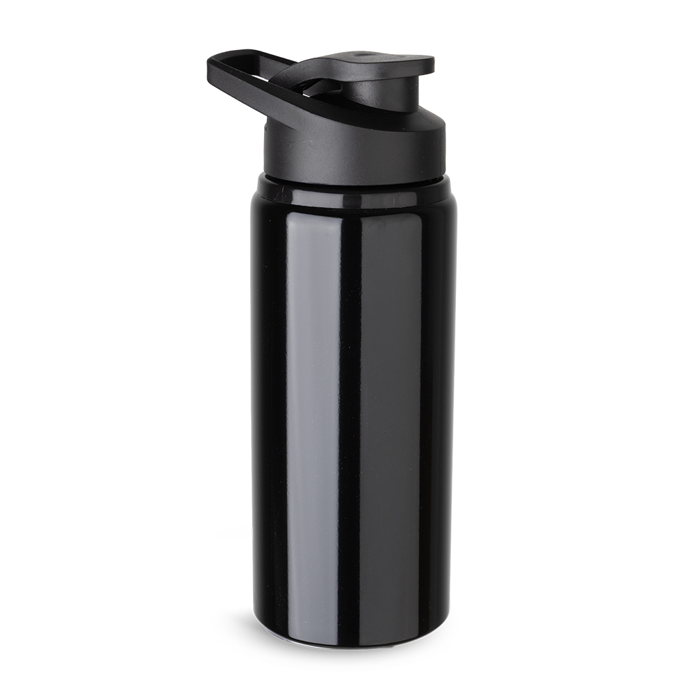 Garrafa de alumínio com capacidade de até 650ml em cores. Tampa rosqueável, bico com tampa vedada de acesso rápido, e alça para transporte.*Nas cores preta, branca e prata, possui corpo com acabamento brilhante — com exceção das versões coloridas, que apresentam acabamento fosco.
