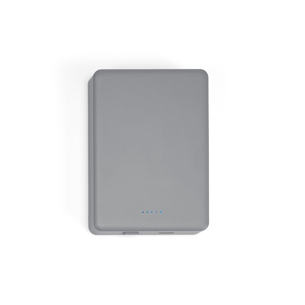 Bateria portátil de carregamento rápido em ABS 100% reciclado com acabamento em mate. A bateria leve em lítio e com design slim, tem uma capacidade de 10’000 mAh e tempo de vida ≥ 300 ciclos. Esta bateria portátil torna-se muito prática para o dia a dia uma vez que permite, através do seu magnetismo, prender atrás dos smartphones ou capas com este sistema. Possui entrada/saída USB-C e potência máxima de 15W para carregamento rápido sem fios. Compatível com smartphones com tecnologia de carregamento sem fios. Incluso cabo USB-C para carregamento rápido. Fornecido em caixa presente de papel kraft reciclado. 90 x 65 x 19 mm | Caixa: 91 x 76 x 23 mm