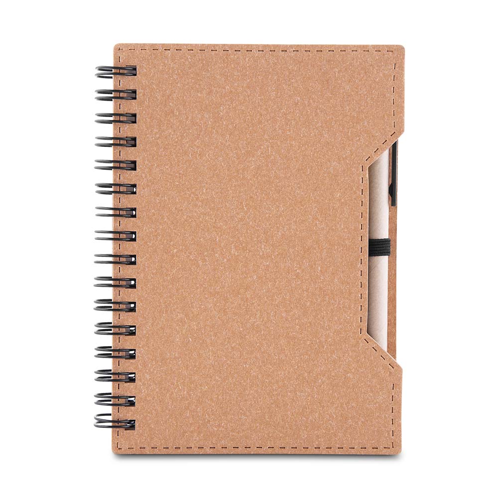 Caderno A6 capa em papelão reciclado com caneta – Kraft