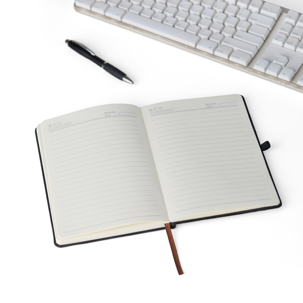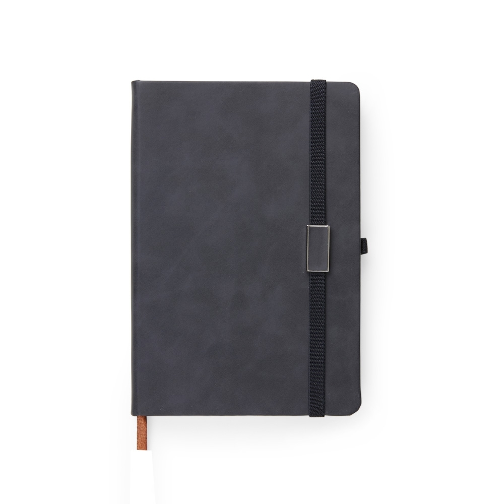 Caderneta emborrachada com suporte para caneta. Contém aproximadamente 96 folhas amarelas com pauta, suporte de nylon para caneta (não acompanha), marcador de página em cetim e elástico para lacre com plaquinha de centro emborrachado. Altura :  21,2 cm Largura :  14,5 cm Espessura :  2 cm Medidas aproximadas para gravação (CxL):  20 cm x 13 cm – Plaquinha 1,1 cm x 2,7 cm Peso aproximado (g):  315