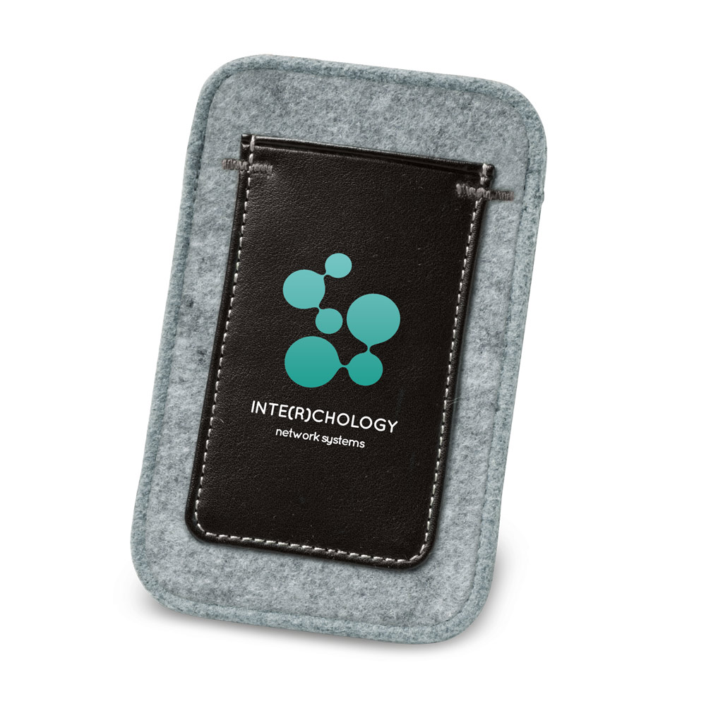Bolsa para celular em feltro e c. sintético com bolso exterior. 90 x 142 x 5 mm | Bolso: 62 x 102 mm