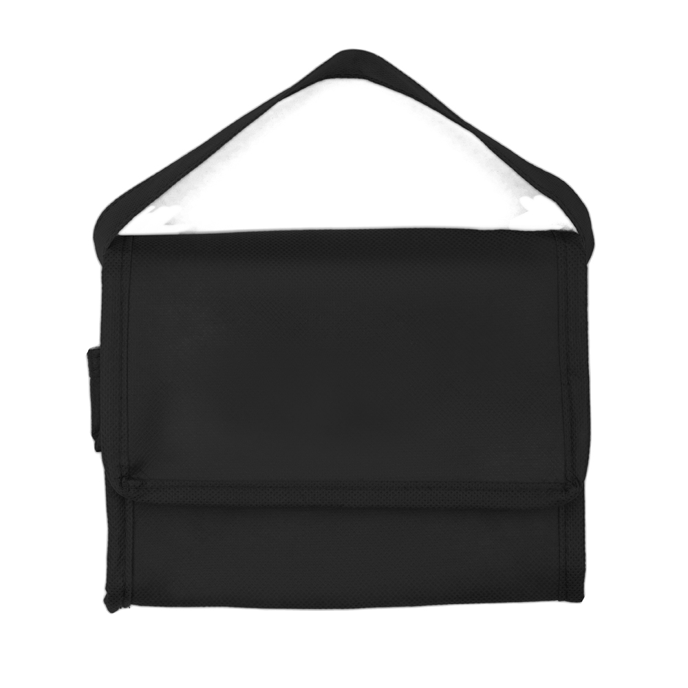 Bolsa térmica em TNT com 80g/m², interior costurado revestido em algodão e folha de alumínio.