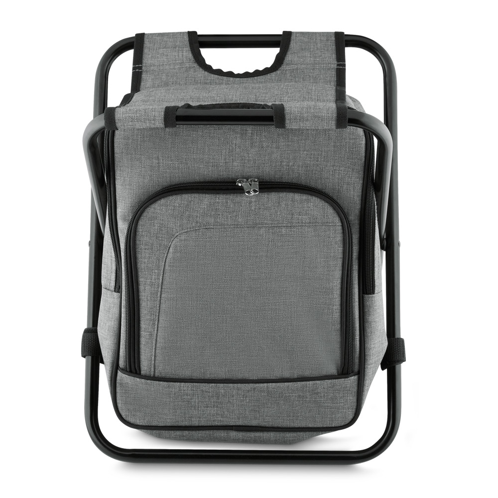 Mochila térmica que se transforma em apoio para assento/cadeira. Com capacidade 16 litros. Fabricada em tecido poliéster 600D, alça de costas regulável. Bolso frontal com zíper e parte interna soldade e ampla, que pode reter liquidos. Suporta até 115kgs.
