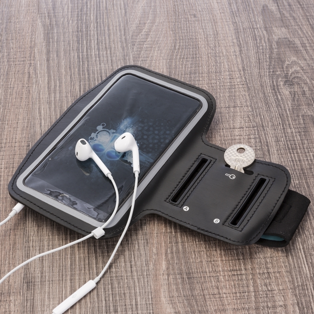 [vc_row][vc_column width=”2/3″]n[vc_column_text]Braçadeira de neoprene com detalhe frontal em couro sintético. Visor plástico e contorno prata, possui “bolso” para chave, “cinta” de velcro regulável com posição indicativa na lateral(A e B). Possui contorno azulado no velcro, parte traseira possui 4 áreas vazadas para poder passar o fone de ouvido(também possuem contorno azulado). Altura : 17,3 cmn Largura : 20,4 cmn n n n n Medidas aproximadas para gravação (CxL): 4 cm x 2 cmn Tamanho total aproximado (CxL): Cinta aberta – 45 cmn Peso aproximado (g): 41n