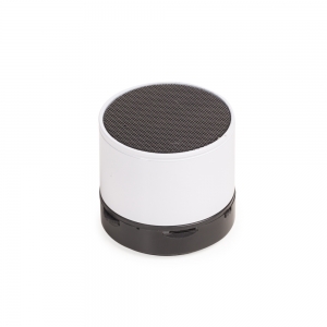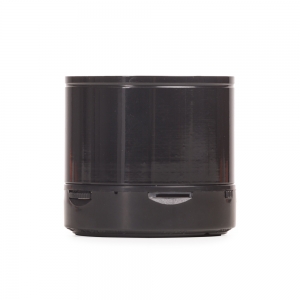 Caixa de som multimídia com Bluetooth e rádio FM. Material plástico resistente, possui a parte inferior com detalhes em relevo de algumas funções: botão Off/On; entrada para cartão MicroSD. O botão de rotação tem algumas funções: >|| M ao ser pressionado serve como Play/Pause, quando segurado ele alterna entre os modos de reprodução; ao rotacionar para esquerda <<- retrocede a faixa e quando segurado diminui o volume; ao rotacionar para direita +>> avança a faixa e quando segurado aumenta o volume. Possui led indicando o funcionamento do item, entrada DC5V/AUX além de utilizada para conectar o cabo para carregamento, necessário plugar o cabo nesta entrada para conseguir a sintonização no modo rádio(quando estiver neste modo, aperta o botão >|| M – Mode/Play para o início da sintonização) e entrada USB. Parte inferior com detalhe emborrachado anti-deslizante, acompanha cabo USB/Aux para recarregar.