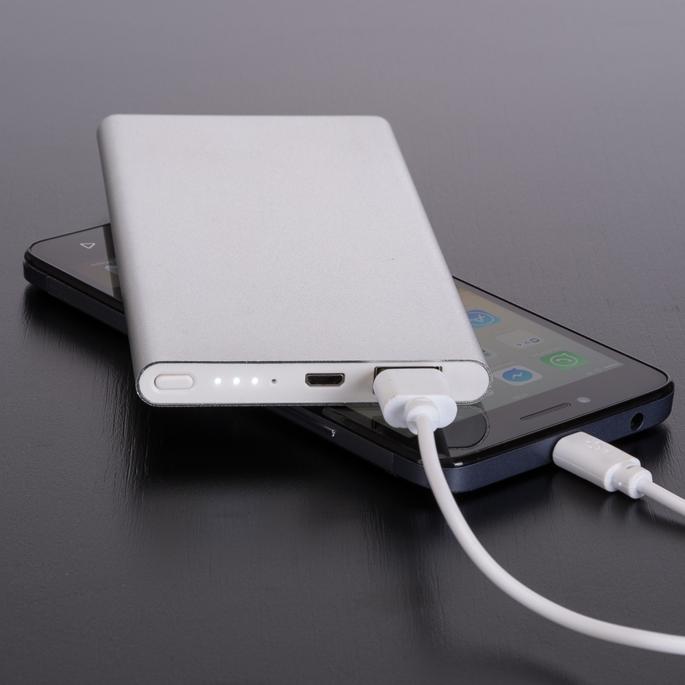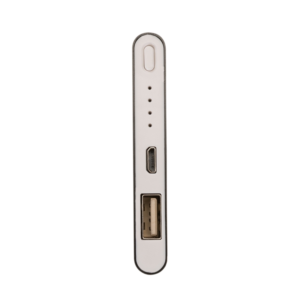 [vc_row][vc_column width=”2/3″]n[vc_column_text]Power bank de metal com indicador de carga em led. Corpo metálico de design fino com detalhe branco nas laterais, “entrada” e “saída” de 5v, 4 indicadores de carga em led branco e botao liga/desliga, 2800 mAh. Acompanha cabo USB. n n n n n n Medidas aproximadas para gravação (CxL): 6 cm x 14 cmn Tamanho total aproximado (CxL): 14,8 cm x 7,1 cm x 1,1 cmn Peso aproximado (g): 149n