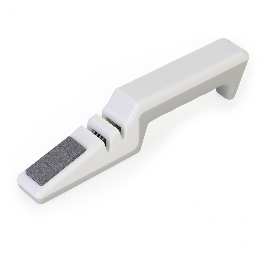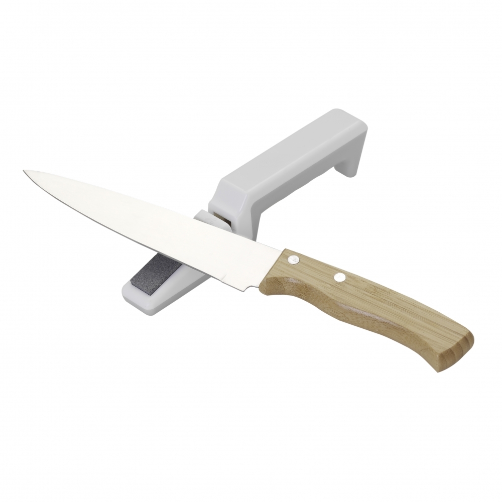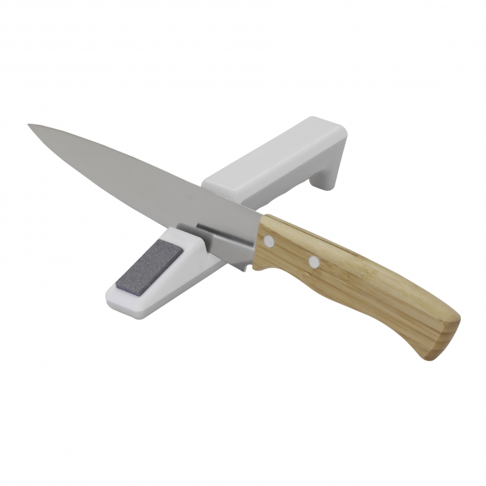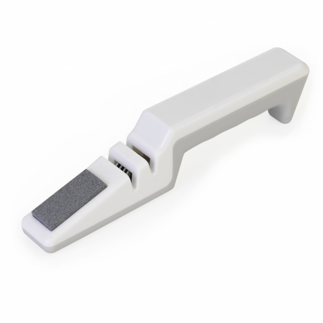 [vc_row][vc_column width=”2/3″]n[vc_column_text]Afiador de facas e tesouras com pedra para acabamento, contém detalhe vazado na área traseira acesso de gancho. n Largura : 2,8 cmn n n Espessura : 4,5 cmn Comprimento : 19,4 cmn Medidas aproximadas para gravação (CxL): 2 cm x 9,5 cmn n Peso aproximado (g): 83n