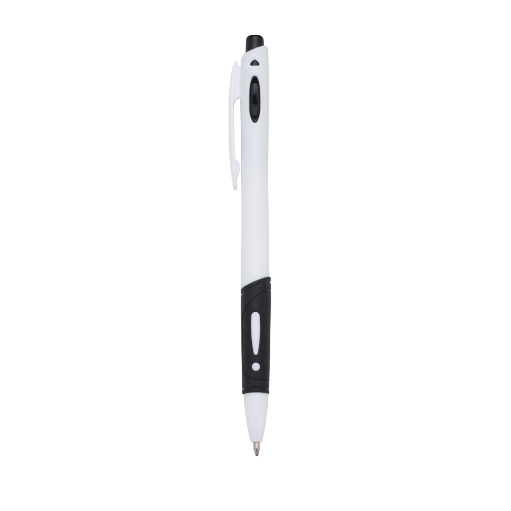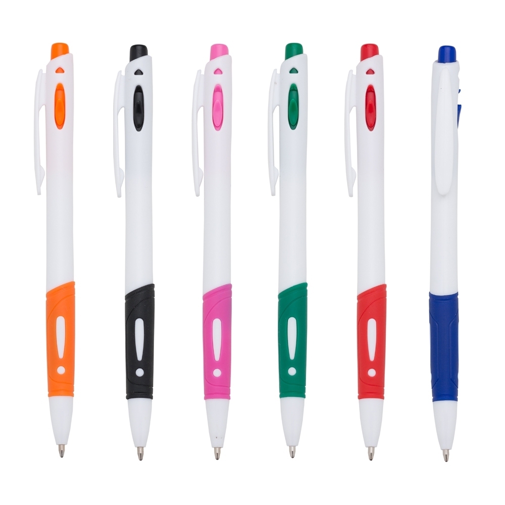 [vc_row][vc_column width=”2/3″]n[vc_column_text]Caneta plástica com detalhes coloridos e parte inferior emborrachado com relevo. Aciona por clique e destrava apertando o “botão” na lateral do clip. n n n n n n Medidas aproximadas para gravação (CxL): 4 cm x 0,6 cmn Tamanho total aproximado (CxL): 13,7 cm x 1,3 cmn Peso aproximado (g): 6n