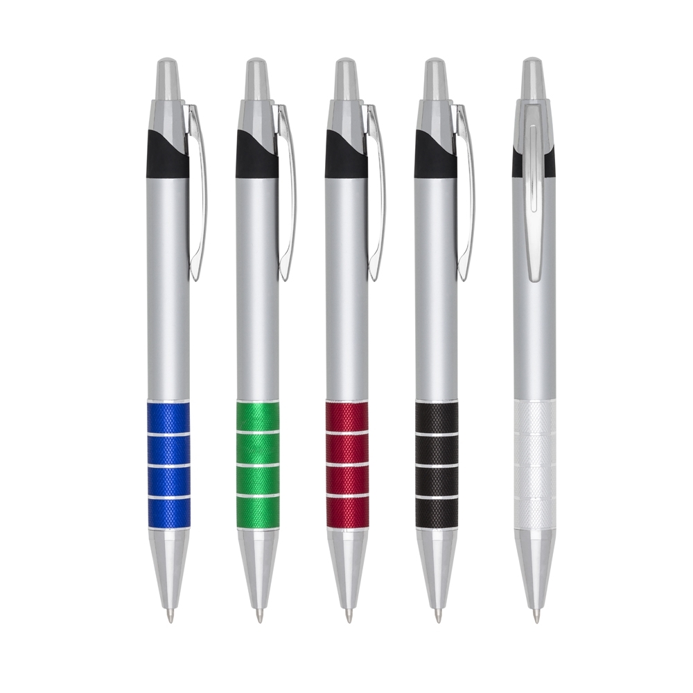 [vc_row][vc_column width=”2/3″]n[vc_column_text]Caneta plástica prata com detalhes coloridos. Possui clip de metal e ao lado design com detalhe preto, quatro anéis coloridos com relevo, aciona por clique. Altura : 14,4 cmn Largura : 1,6 cmn n n n n Medidas aproximadas para gravação (CxL): 3 cm x 1 cmn n Peso aproximado (g): 8n