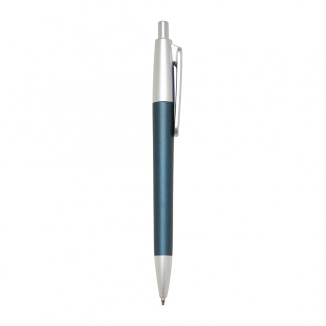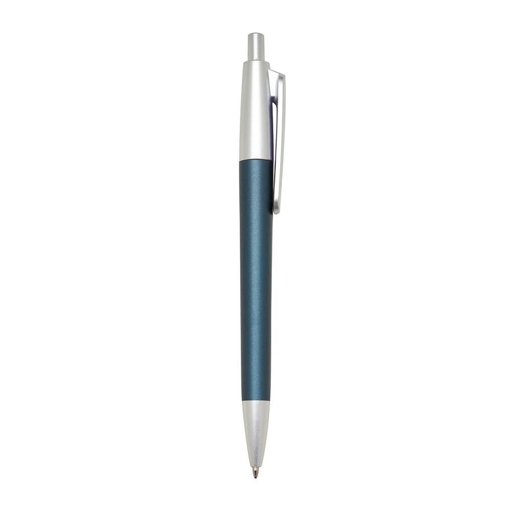 [vc_row][vc_column width=”2/3″]n[vc_column_text]Caneta plástica com acabamento fosco e detalhes em prata, acionamento por clique e carga esferográfica azul.n