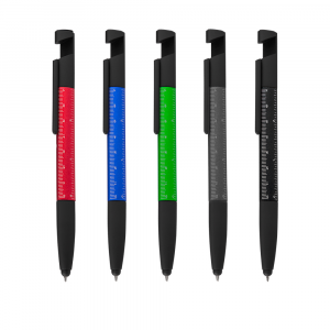 [vc_row][vc_column width=”2/3″]n[vc_column_text]Caneta esferográfica em metal com ponta touch escrita em azulnFerramentas, apoio para smartfonenLimpa tela e réguan
