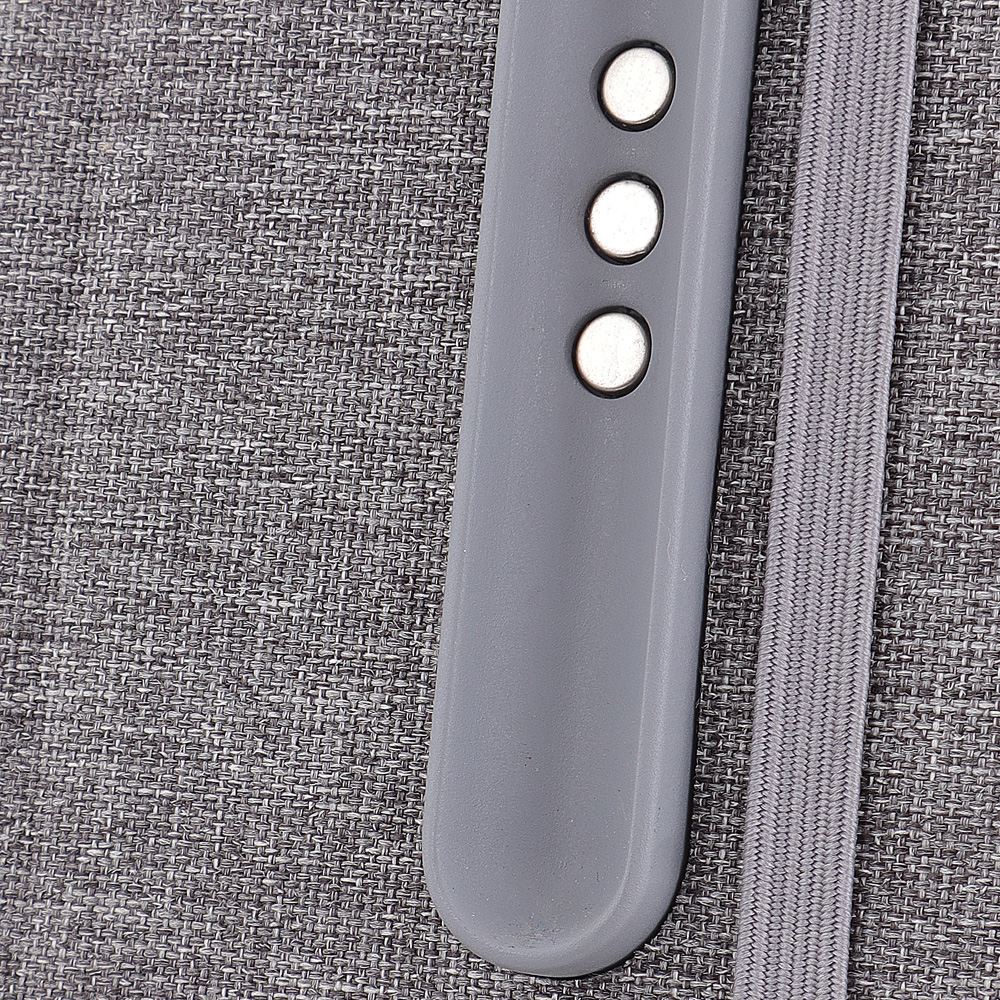 Caderno produzido com capa em tecido RPET e suporte para caneta na capa, capa dobrável para suporte de smartphone, miolo com 80 folhas pautadas.