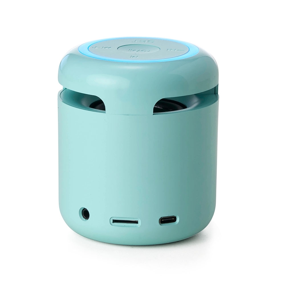Caixa de som multimidia com estrutura em plástico, display frontal em LED e base emborrachada antiderrapante. Possui conexão Bluetooth 5.0 e entradas para cabo auxiliar P2 e cartão TF (microSD), que permitem a reprodução de arquivos MP3, além de função para sintonia de rádio FM e programação de até três alarmes diferentes. Acompanha cabo USB-C.