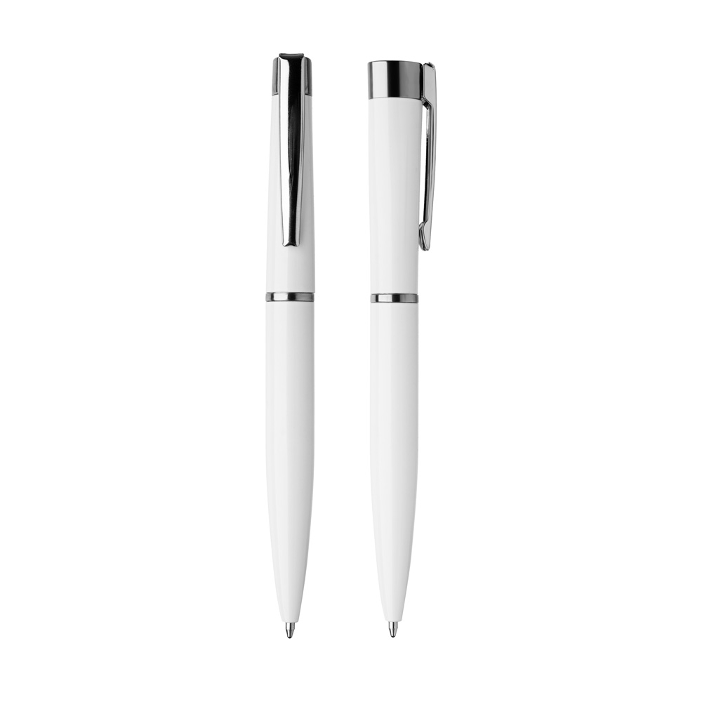 Caneta esferográfica de metal escrita em azul