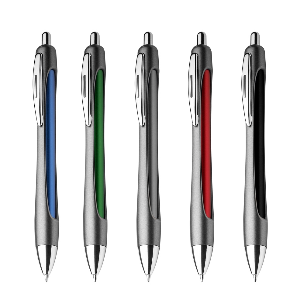 Caneta em alumínio reciclado com carga esferográfica azul 1.0 mm e acionamento por clique.