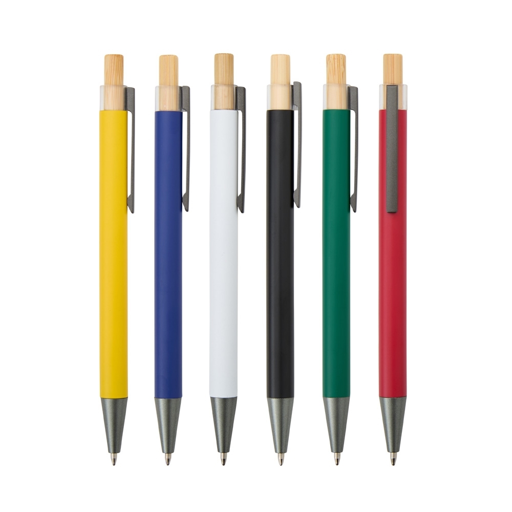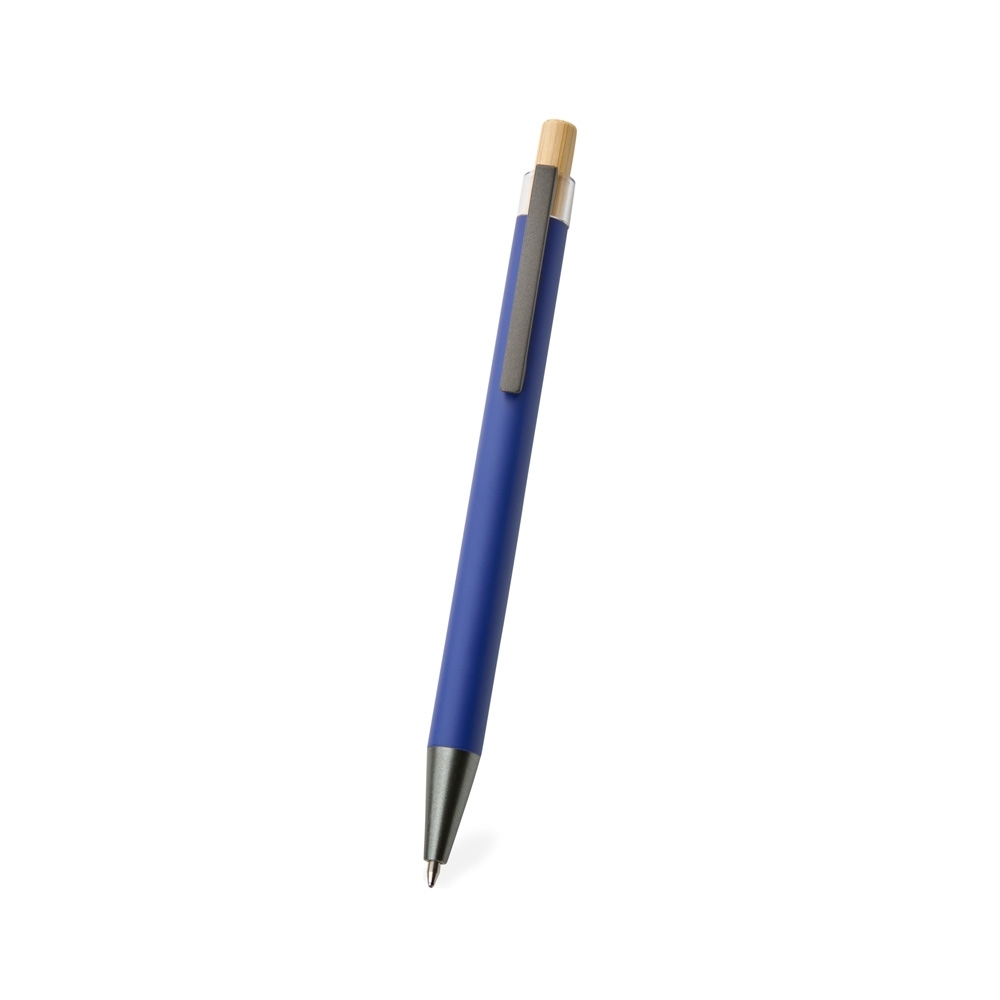 Caneta metálica com carga esferográfica azul 1.0 mm e acionamento por clique em bambu.