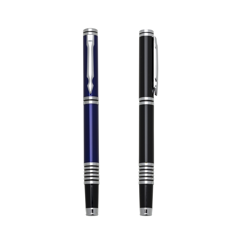 Caneta metal com tampa, carga rollerball preta. OBS.: PEDIDO APENAS MÚLTIPLO DE 15 PEÇAS!