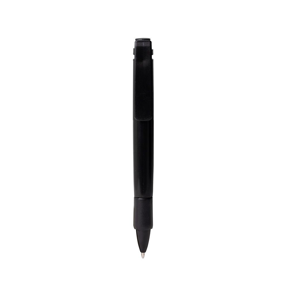 Caneta plástica com carga esferográfica azul 1.0mm e acionamento por clique.