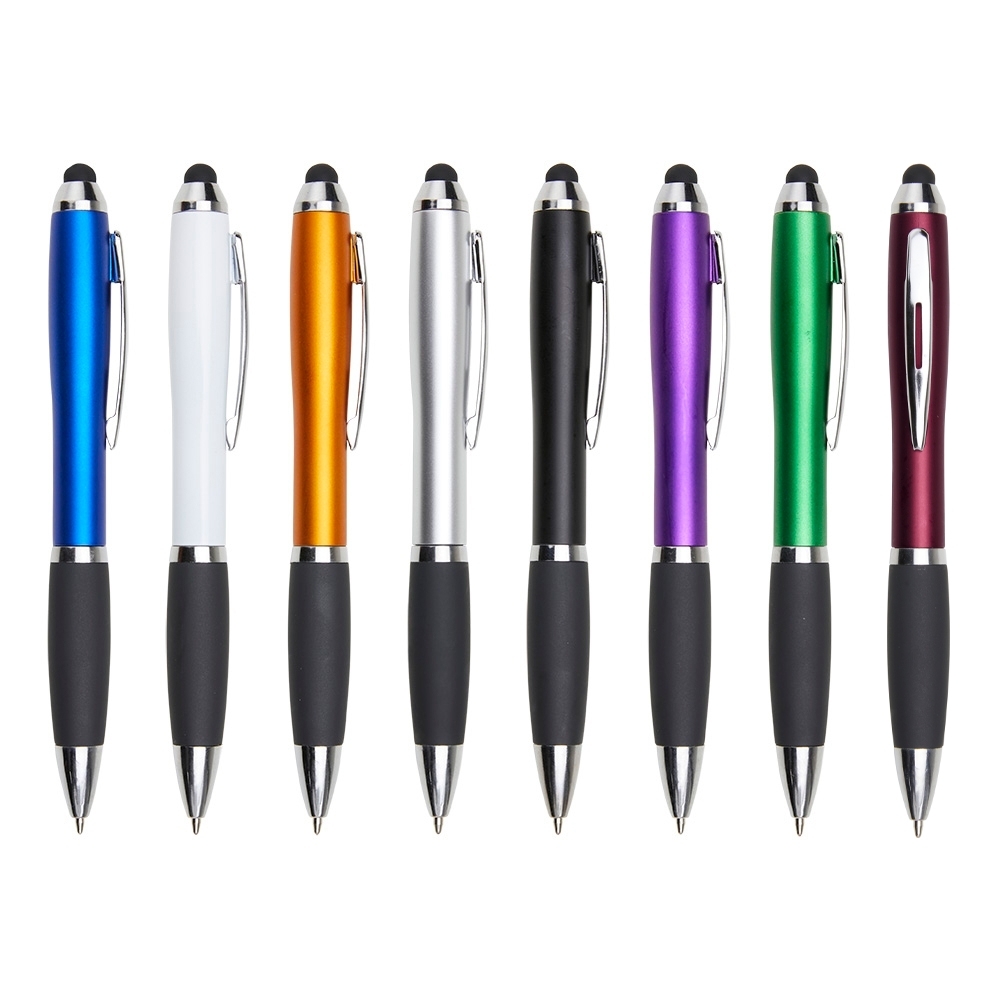 Caneta plástica com touch screen, acionamento por rotação e carga esferográfica azul 1mm.OBS.: PEDIDOS MÍNIMO DE 50 PEÇAS! Altura :  13,4 cm Largura :  1,7 cm Medidas aproximadas para gravação (CxL):  2,5 cm x 0,5 cm Peso aproximado (g):  9