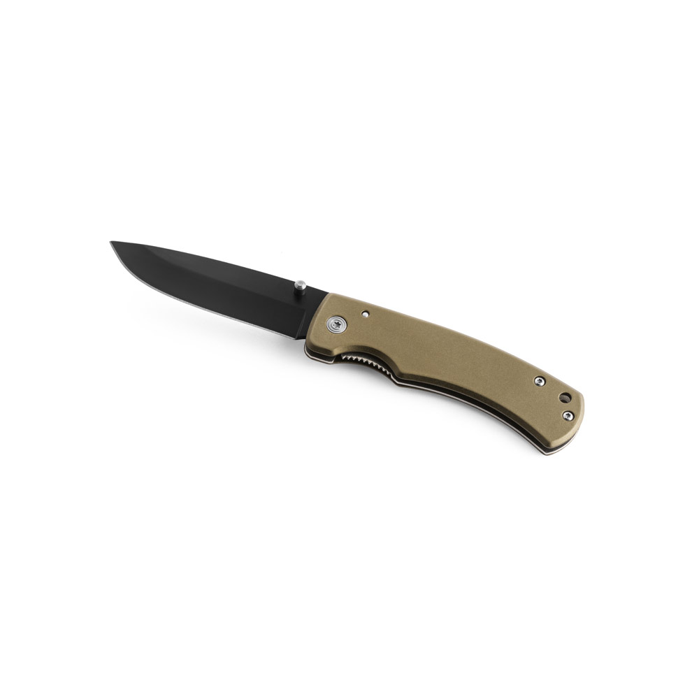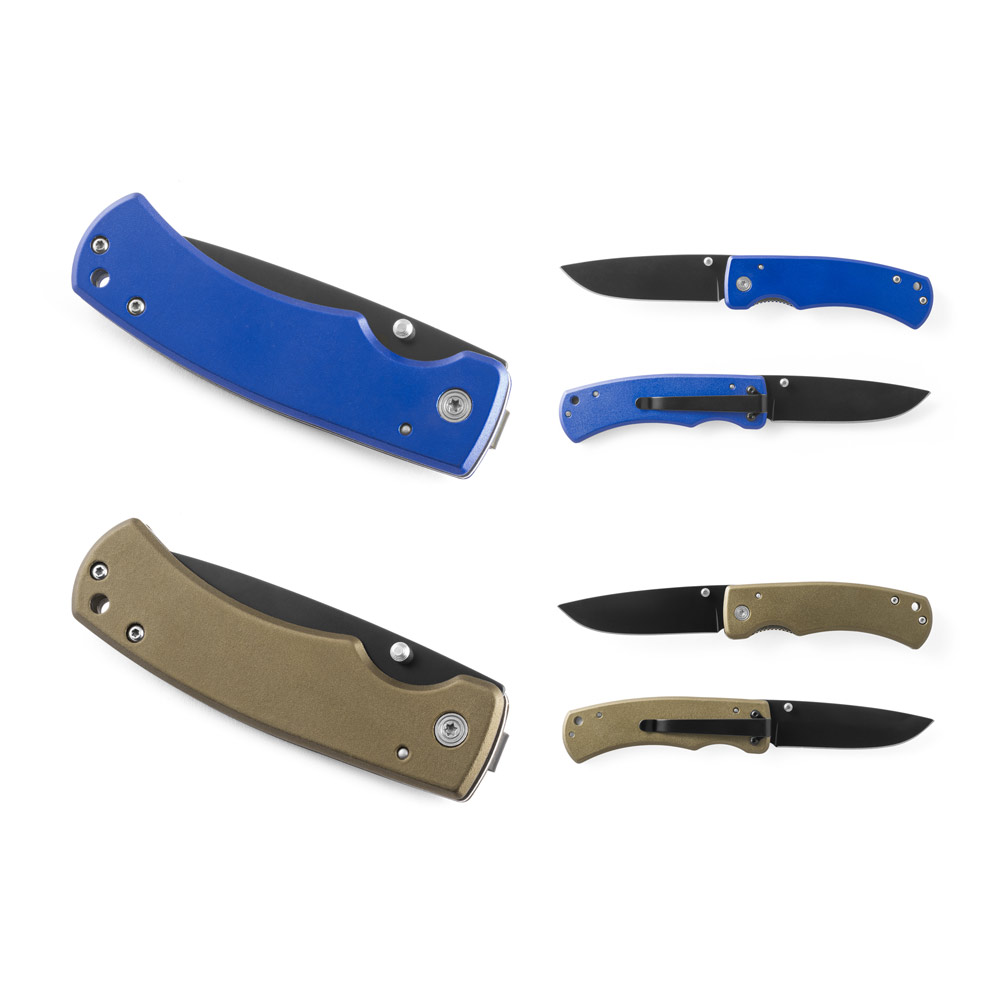Canivete em aço inox e metal com fecho de segurança e clipe. Fornecido em caixa presente. 97 x 15 x 29 mm | Caixa: 110 x 37 x 20 mm