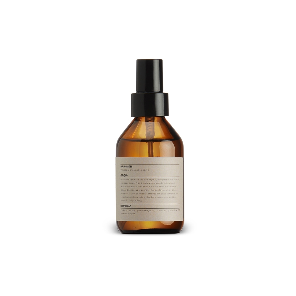 Home Spray em frasco de vidro 100ml, com essência de cedro verde.