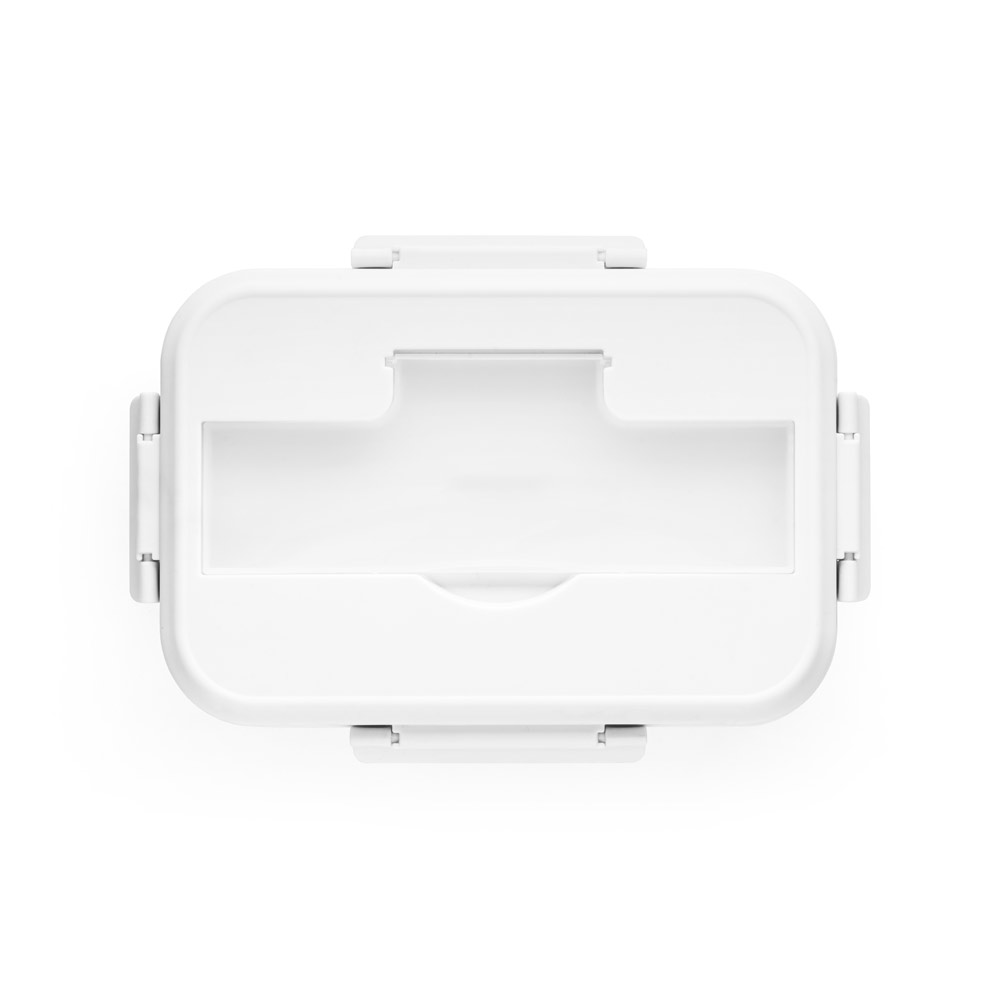 Marmita em PP, com tampa com compartimento para talheres (inclusos). A caixa é apta para micro-ondas, retirando a tampa. Não aconselhável para líquidos. Capacidade 1 L. Certificação EU Food Grade. 210 x 145 x 80 mm