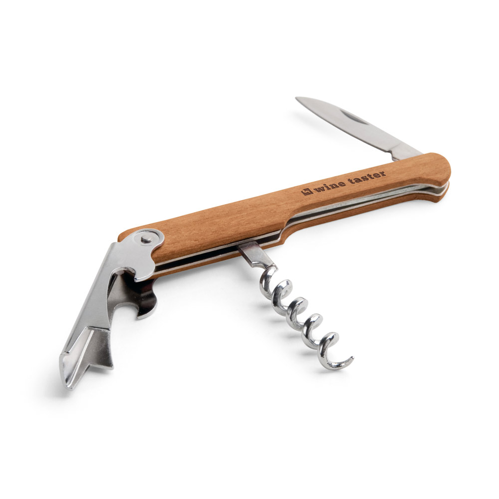 CARIN. Saca-rolhas em madeira com abridor de garrafa e canivete de sommelier