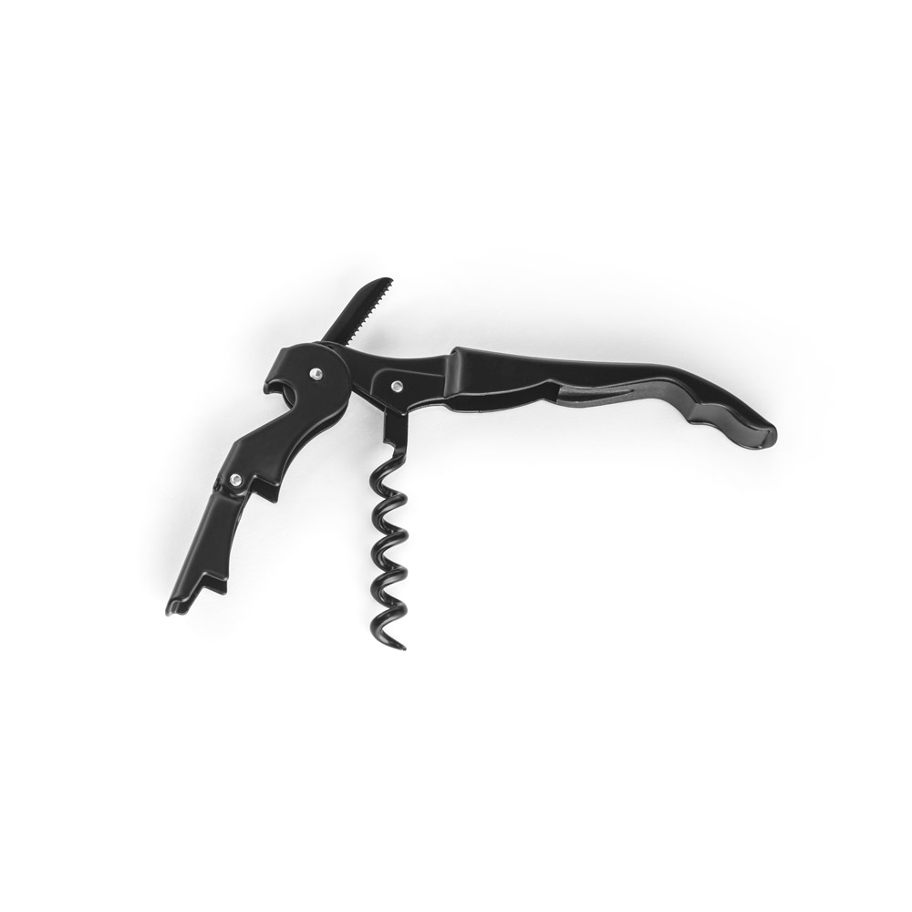 Saca-rolhas em metal e PP com abridor de garrafas e canivete de sommelier. Espiral em aço inox. 121 x 20 x 12 mm