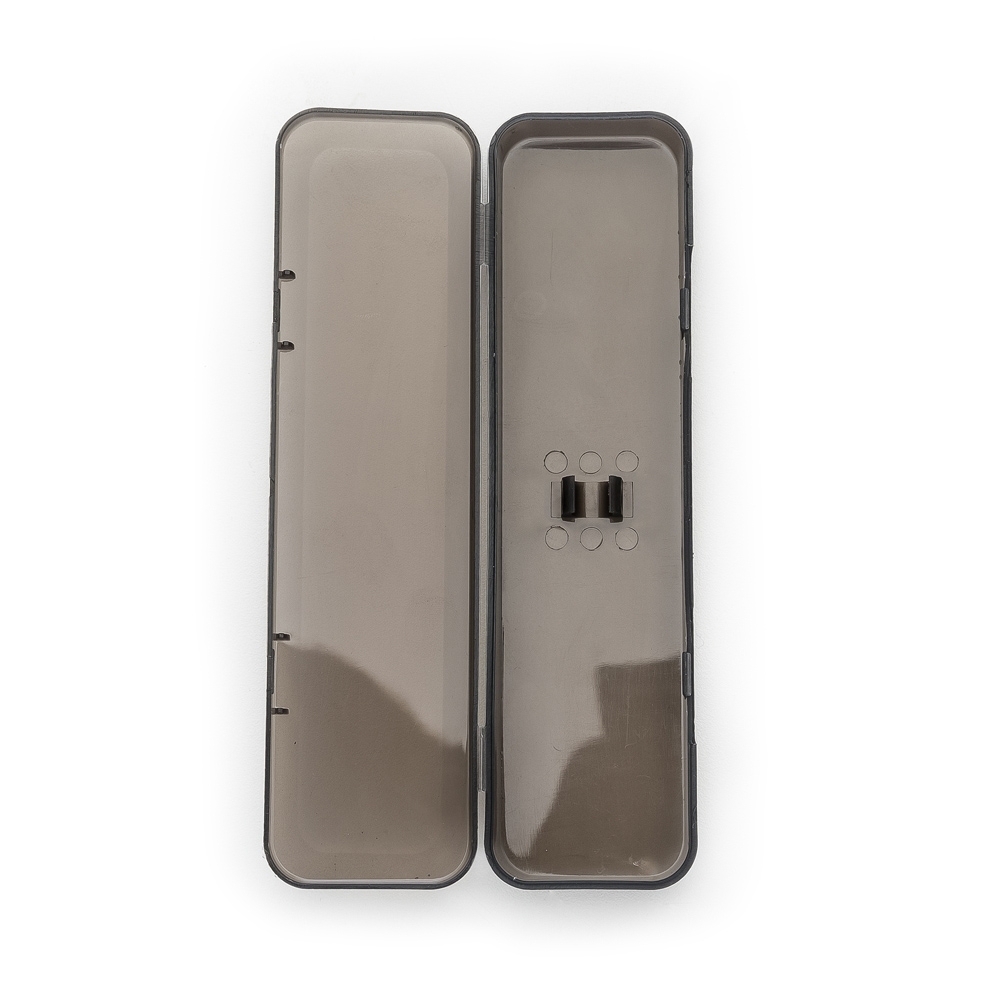 [vc_row][vc_column width=”2/3″]n[vc_column_text]Estojo plástico para uma caneta, pintura fosca e apenas parte central da tampa transparente. Possui um suporte internos para fixar a caneta. OBS.: PEDIDO APENAS MÚLTIPLO DE 50 PEÇAS! n Largura : 4,5 cmn n n Espessura : 2 cmn Comprimento : 17 cmn Medidas aproximadas para gravação (CxL): 15,3 cm x 3 cmn n Peso aproximado (g): 24n