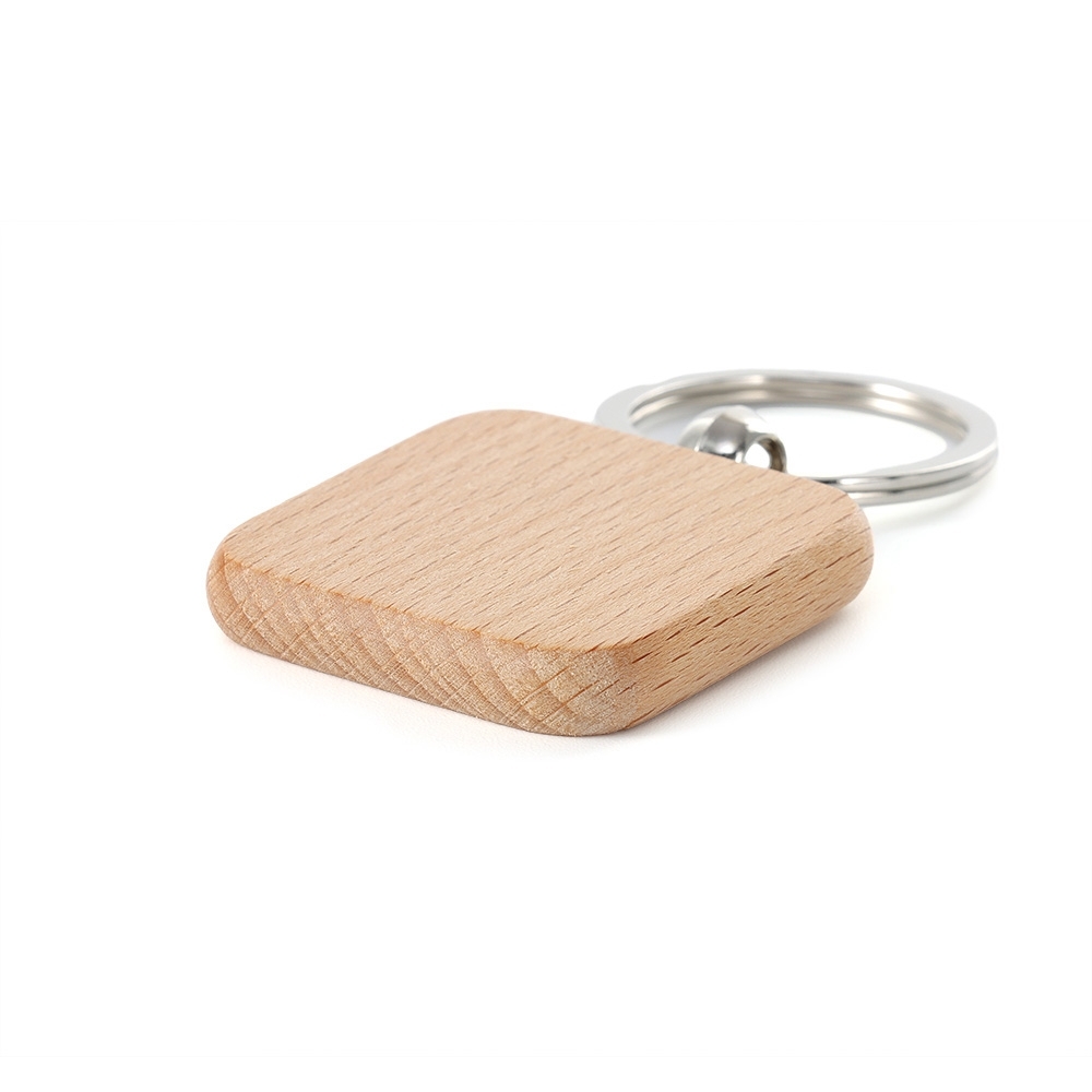 Chaveiro em madeira com formato quadrado.