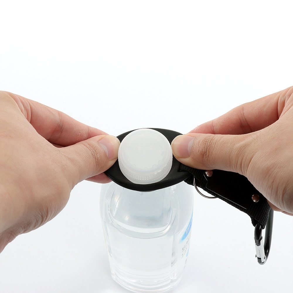 Suporte para garrafa para pet. Acompanha mosquetão e argola para chaveiro.