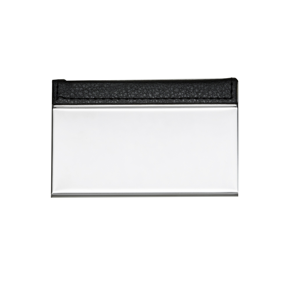 [vc_row][vc_column width=”2/3″]n[vc_column_text]Porta cartão de metal com couro sintético. Couro com textura e costura preta, parte interna revestida com veludo. n n n n n n Medidas aproximadas para gravação (CxL): 1 cm x 9,5 cmn Tamanho total aproximado (CxL): 9,9 cm x 6,5 cmn Peso aproximado (g): 61n