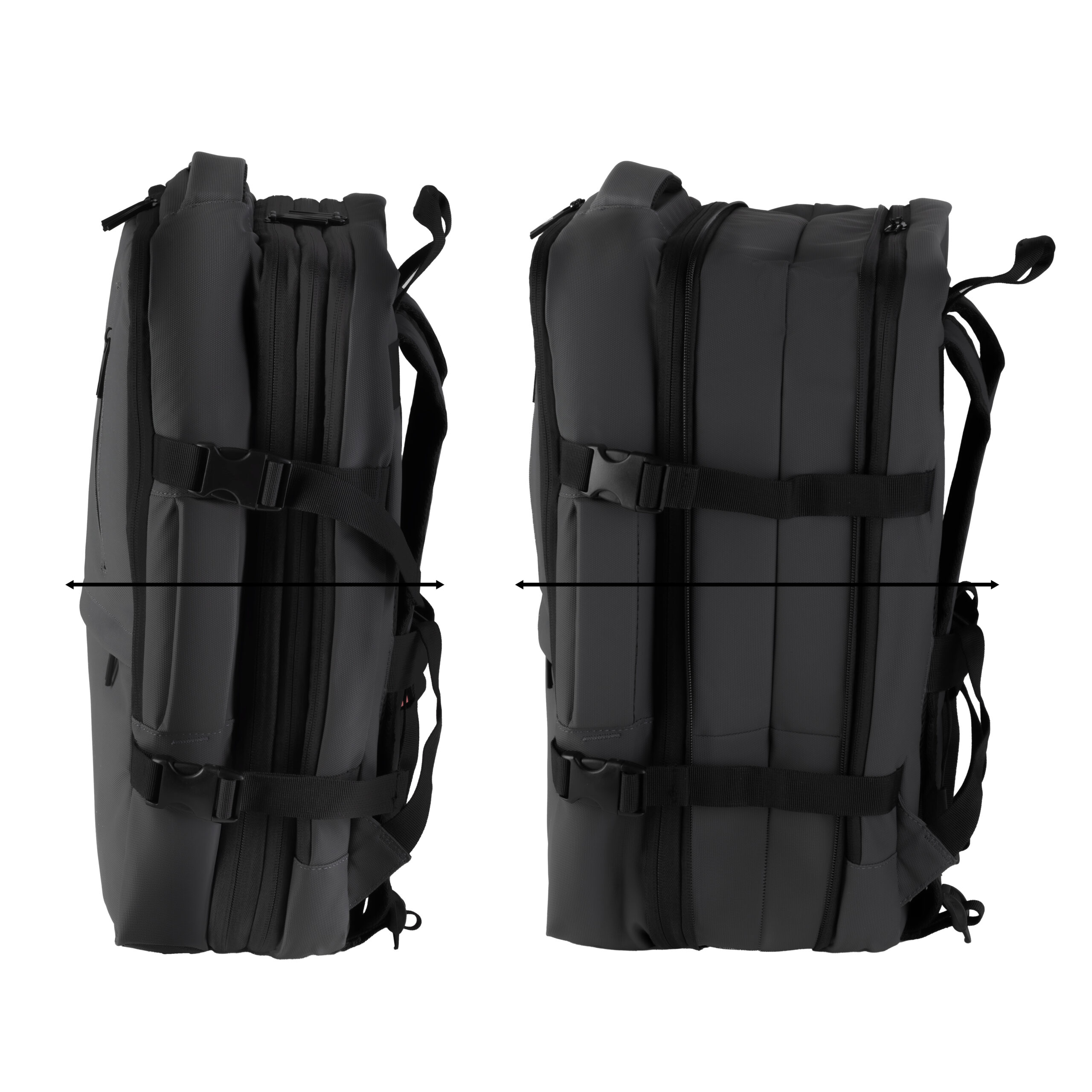 Mochila Pasta confeccionada em poliéster 600D resinado, com dois bolsos frontais e expansor. Possui três engates rápidos, engate para mala de viagem, além de alças de mão e de ombro acolchoadas para maior conforto. Conta com dois compartimentos internos para pequenos objetos, tablet e notebook de até 15,6”, além de elástico interno para manter as roupas no lugar.
