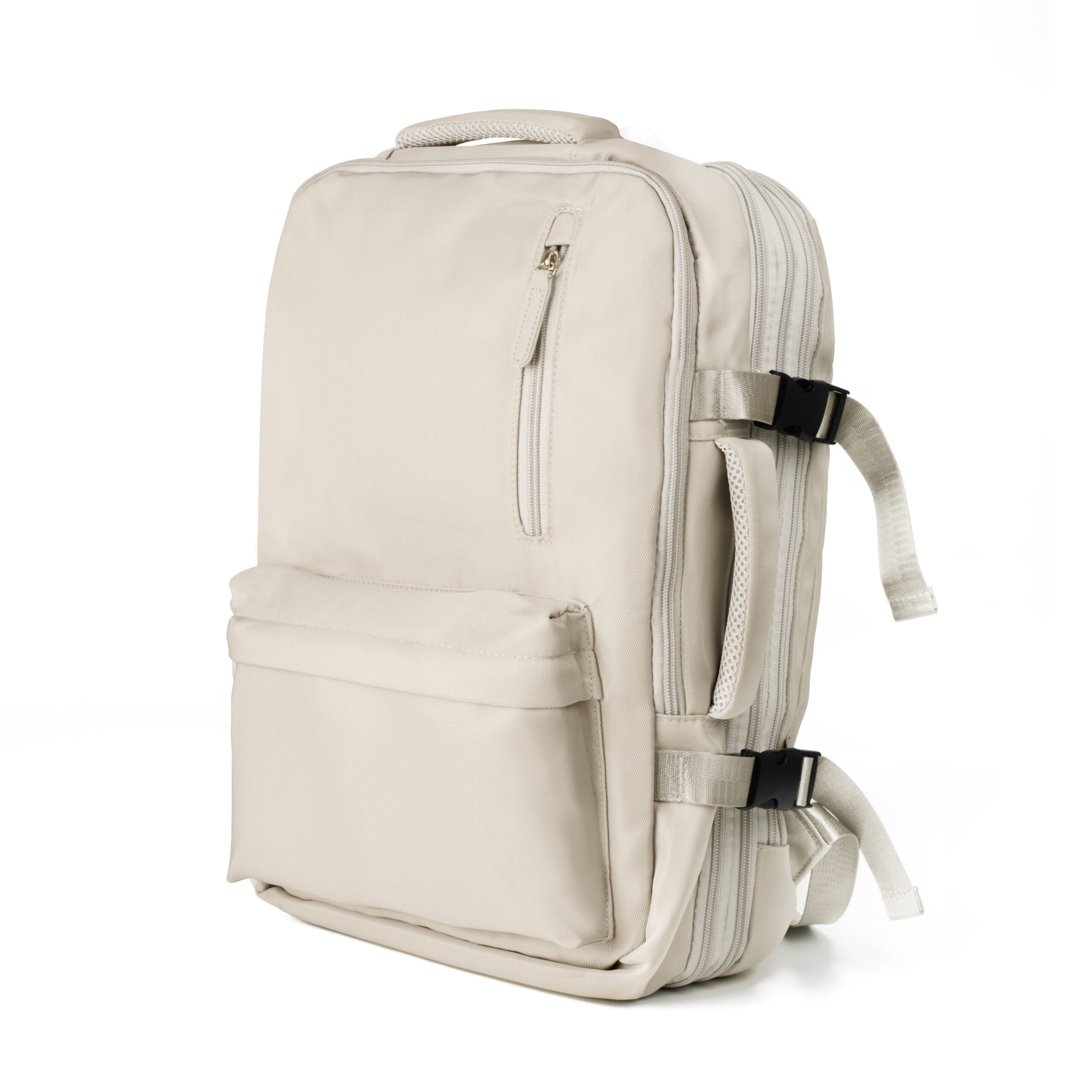 Mochila para notebook com expansor, confeccionada em tecido externo de poliéster 600D com detalhe em PU no zíper e tecido interno em poliéster 210D. Conta com dois bolsos frontais com zíper, alças de mão e de ombro acolchoadas, conector USB na lateral, engate para mala de viagem e três engates rápidos. Possui ainda dois compartimentos com divisórias para pequenos objetos e compartimento acolchoado para notebook de até 15,6”. Possui uma capacidade de 15 Litros (Fechada) e 31 Litros (Expandida).