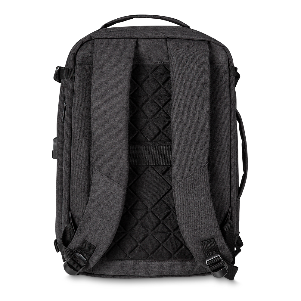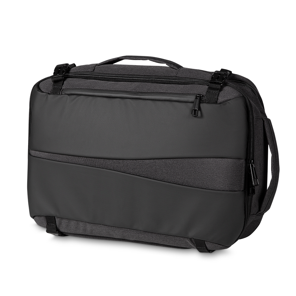 Mochila e Pasta para notebook em tecido poliéster 600D e detalhe em PU com interior em poliéster 210D.