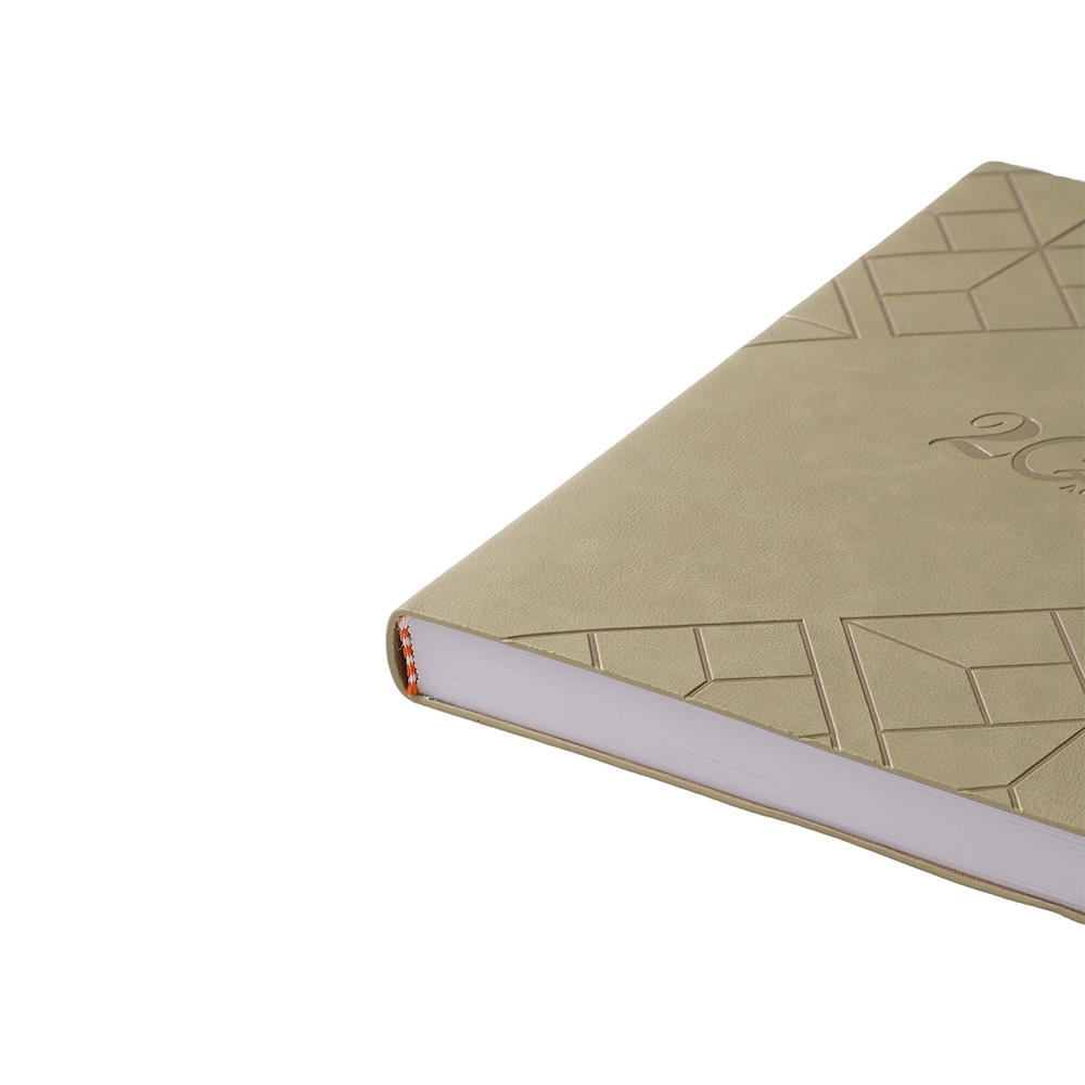 Agenda 2026 de couro sintético com abas mensais e marcador de página em cetim. Contém folhas para dados pessoais, calendários 2026 à 2028, planejamento 2026, DDI, página de conversões e páginas de contatos.