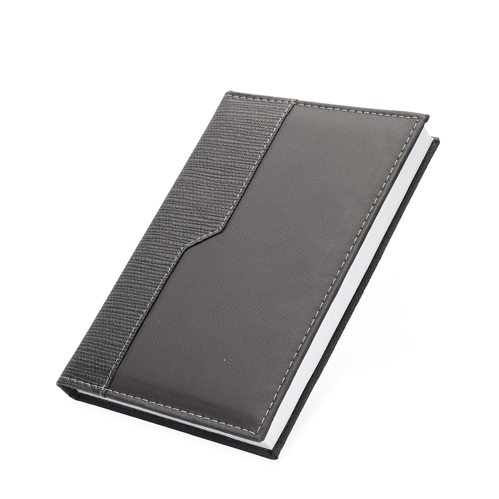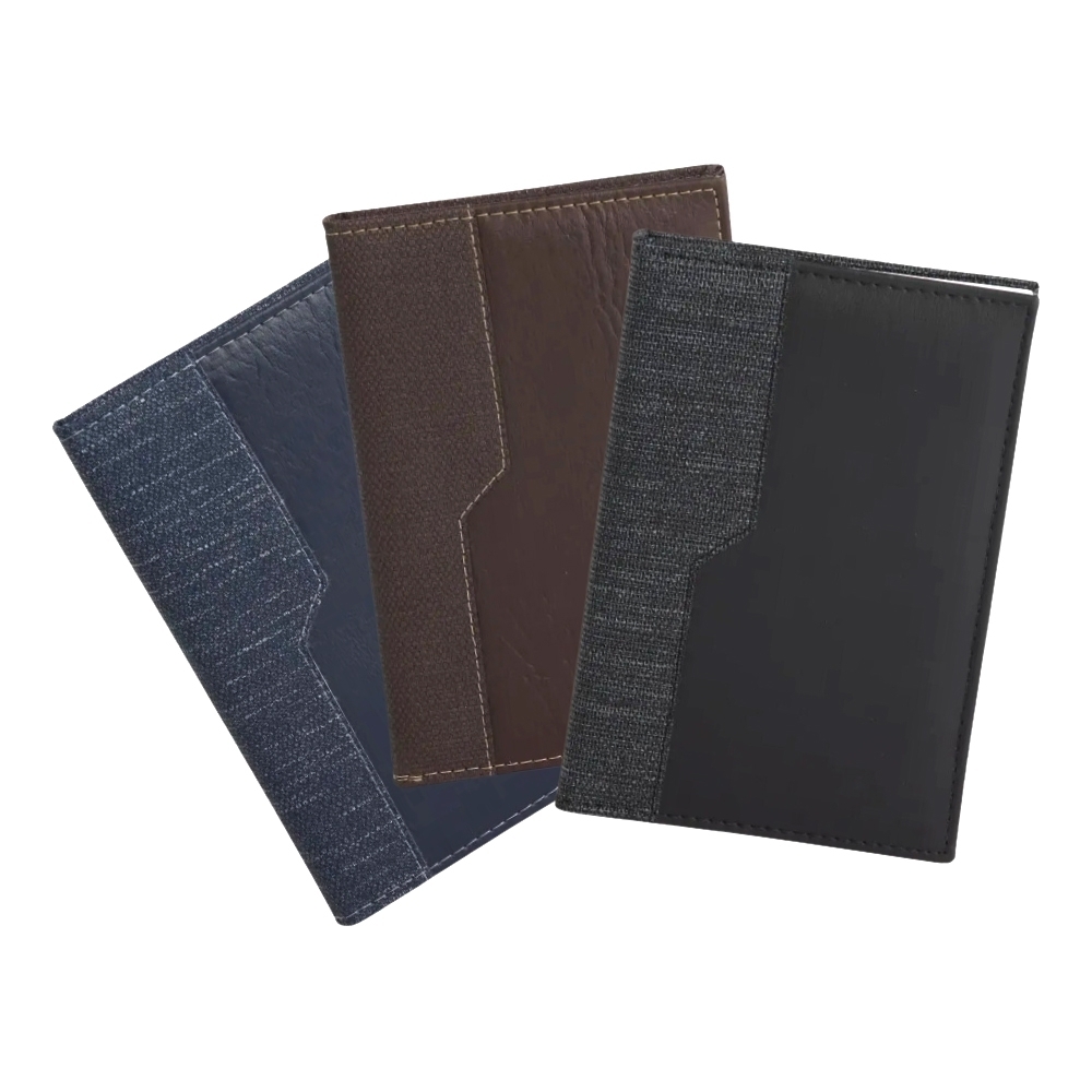Agenda diária 2026 com capa em couro sintético e marca-páginas em fita de cetim. Apresenta páginas dedicadas a dados pessoais, calendários de 2025 até 2027, listas de telefones úteis, planejamento diário e financeiro, lista de contatos e mapas.